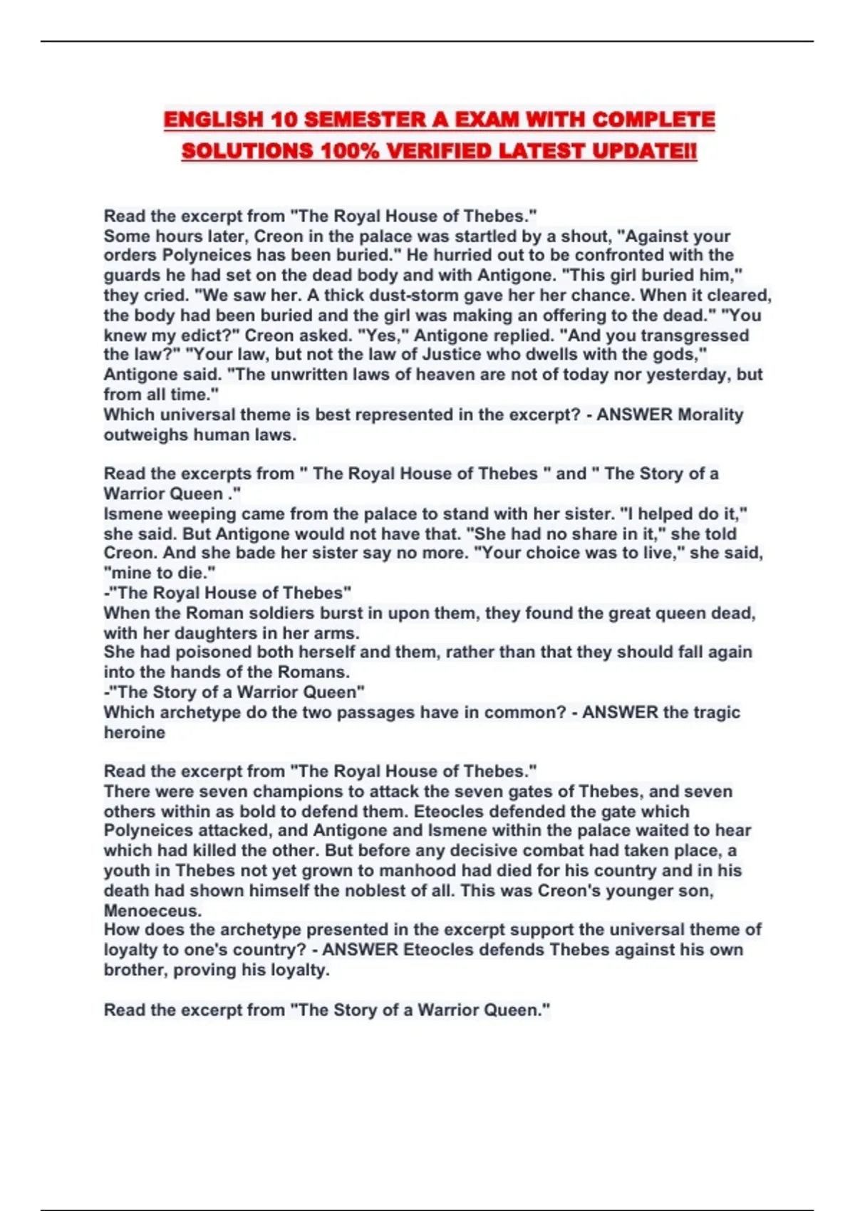 ENGLISH 10 SEMESTER A EXAM WITH COMPLETE