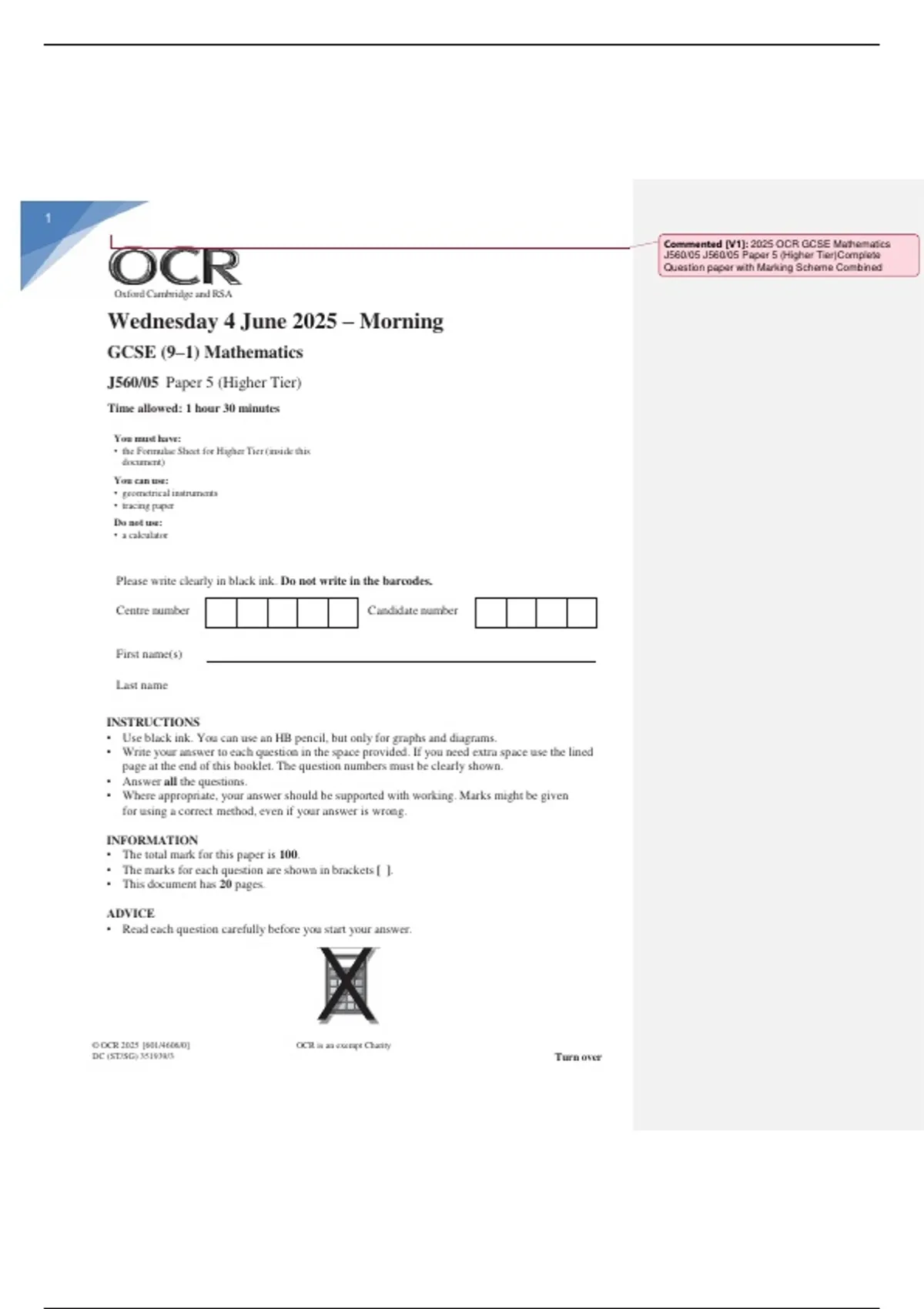 Commented [V1]: 2025 OCR GCSE Mathematics