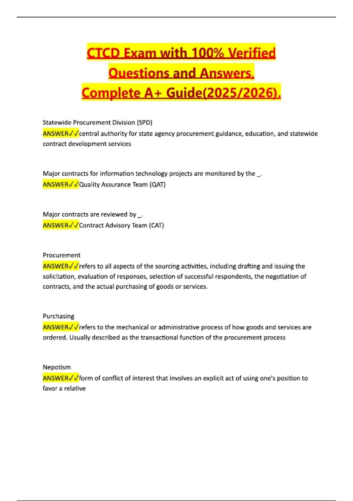 CTCD Exam with 100% Verified Questions and Answers, Complete A+ Guide(2025/2026).