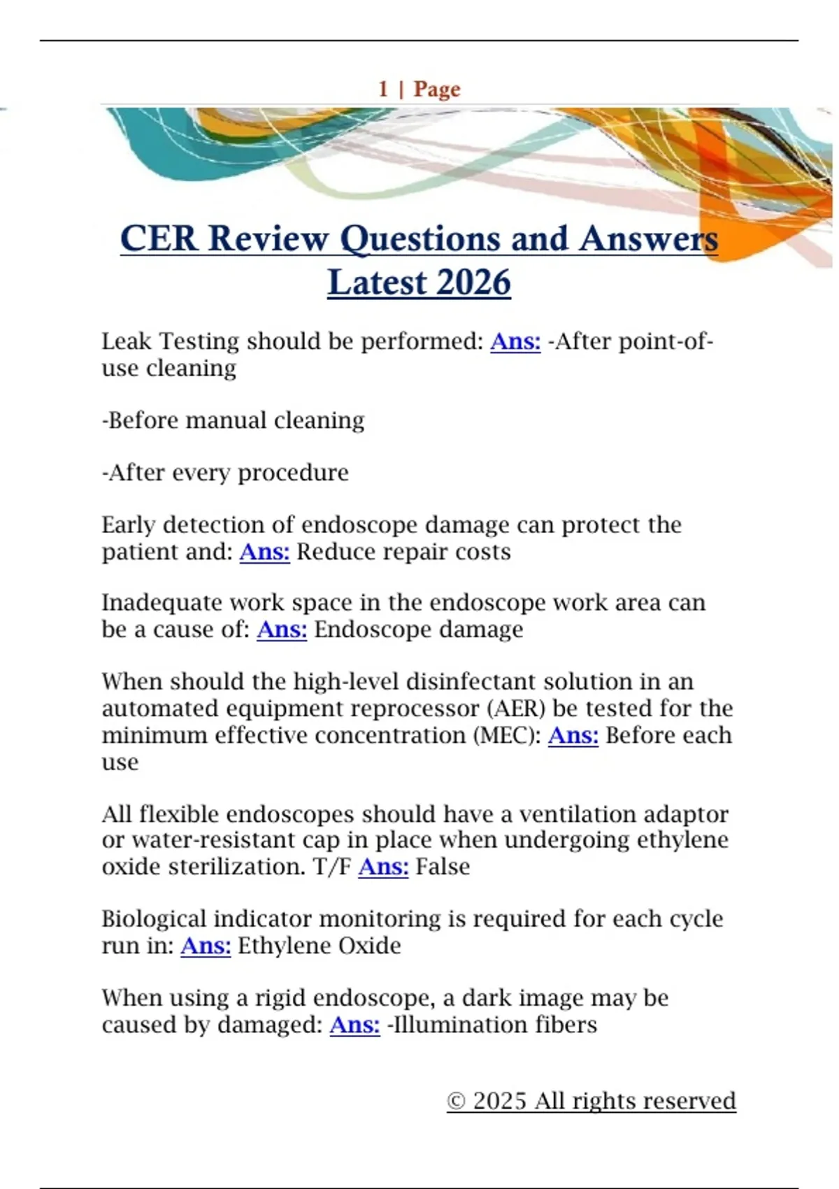 CER Review Questions and Answers