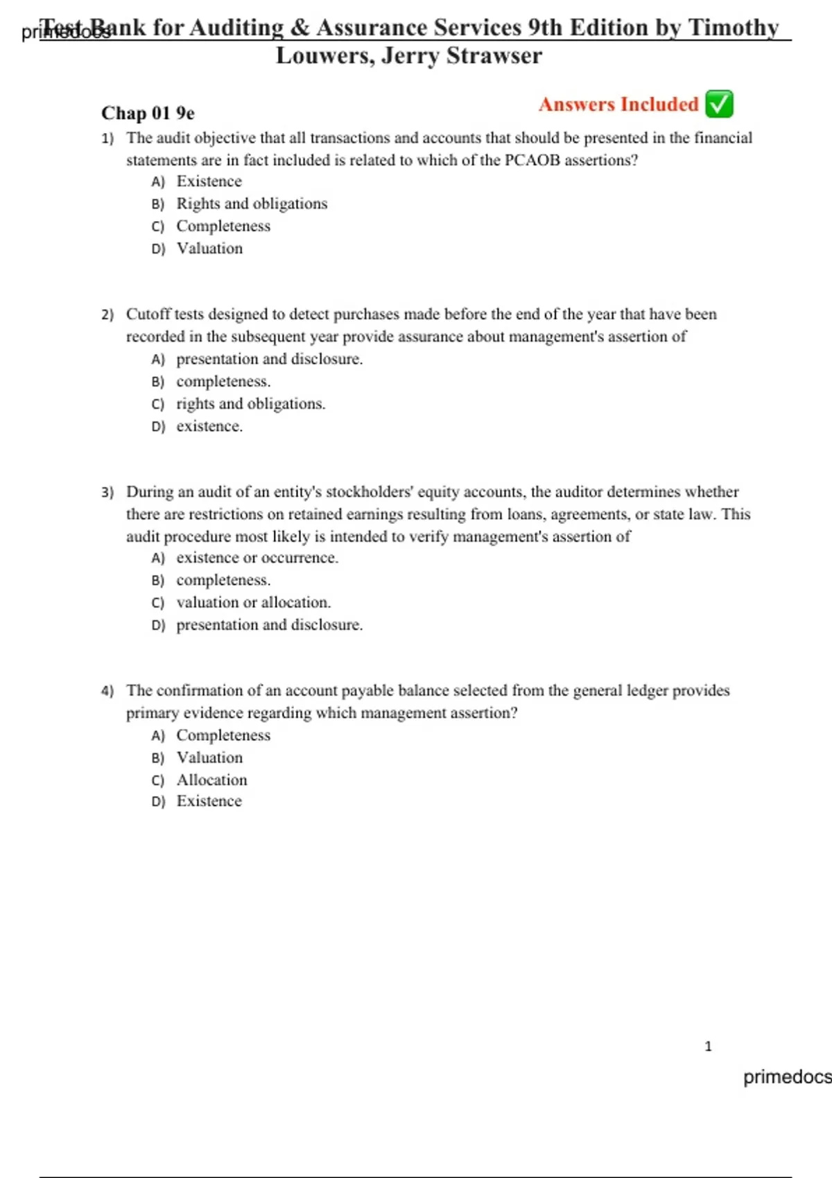 primedocs for Auditing & Assurance Services 9th Edition by Timothy