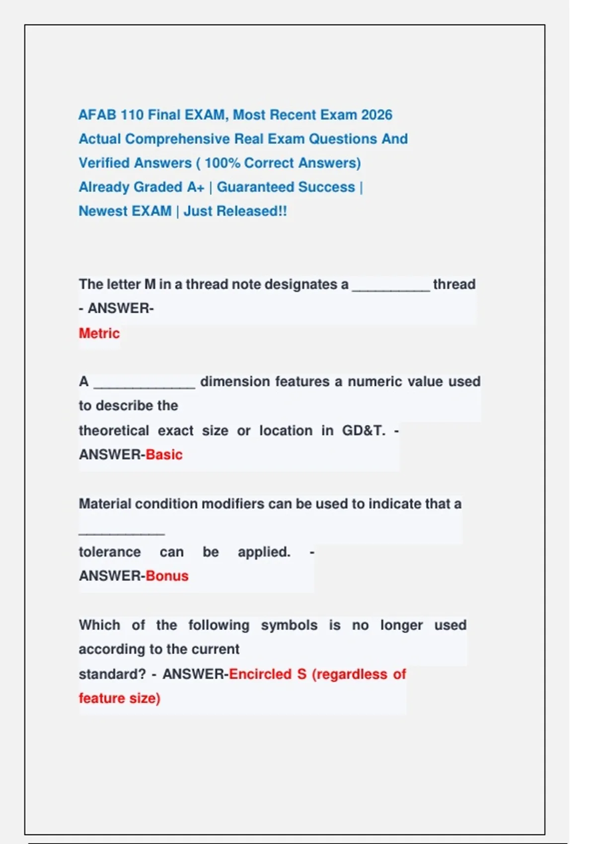 AFAB 110 Final EXAM, Most Recent Exam 2026 Actual Comprehensive Real Exam Questions And Verified Answers ( 100% Correct Answers) Already Graded A+ | Guaranteed Success | Newest EXAM | Just Released!! AFAB 110 Final EXAM, Most Recent Exam 2026 Actual Comprehensive Real Exam Questions And Verified Answers ( 100% Correct Answers) Already Graded A+ | Guaranteed Success | Newest EXAM | Just Released!! AFAB 110 Final EXAM, Most Recent Exam 2026 Actual Comprehensive Real Exam Questions And Verified Answers ( 100% Correct Answers) Already Graded A+ | Guaranteed Success | Newest EXAM | Just Released!! AFAB 110 Final EXAM, Most Recent Exam 2026 Actual Comprehensive Real Exam Questions And Verified Answers ( 100% Correct Answers) Already Graded A+ | Guaranteed Success | Newest EXAM | Just Released!! AFAB 110 Final EXAM, Most Recent Exam 2026 Actual Comprehensive Real Exam Questions And Verified Answers ( 100% Correct Answers) Already Graded A+ | Guaranteed Success | Newest EXAM | Just Released!!
