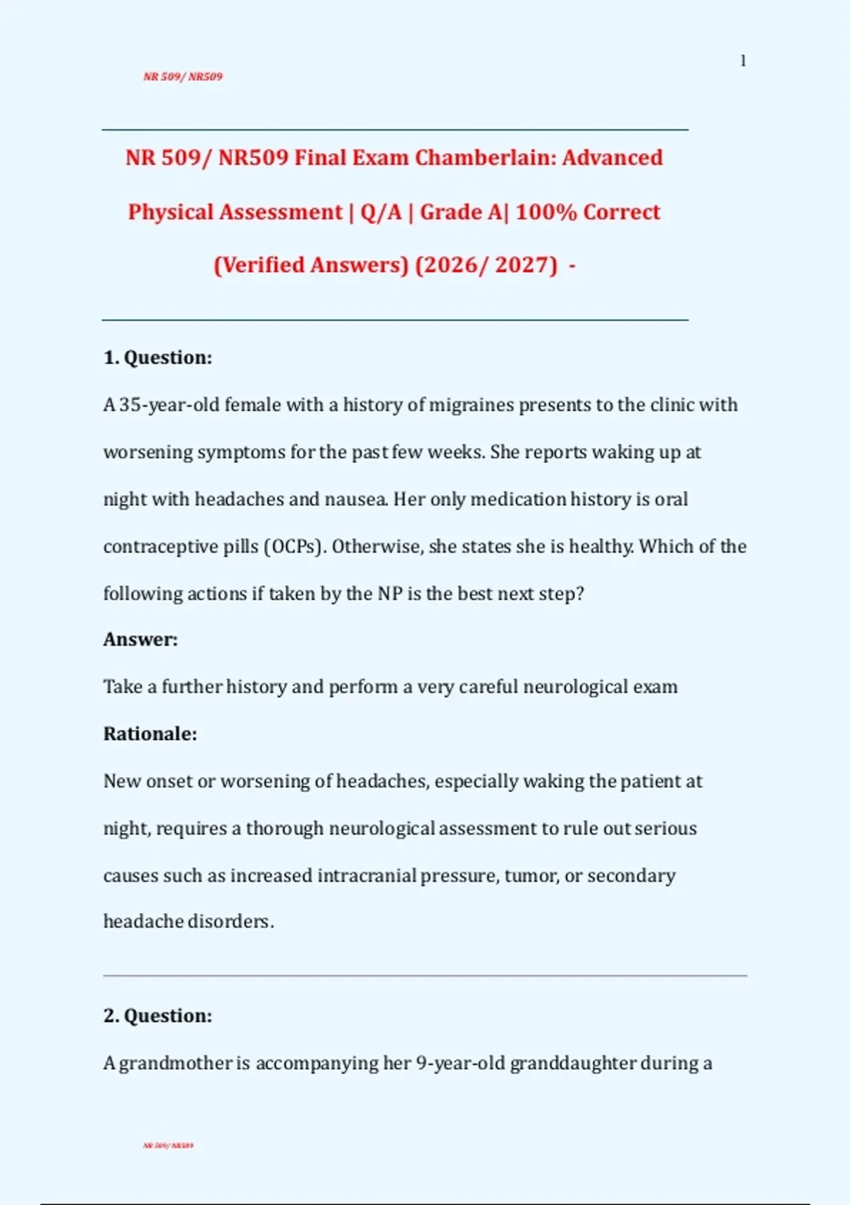 NR 509/ NR509 Final Exam Chamberlain: Advanced