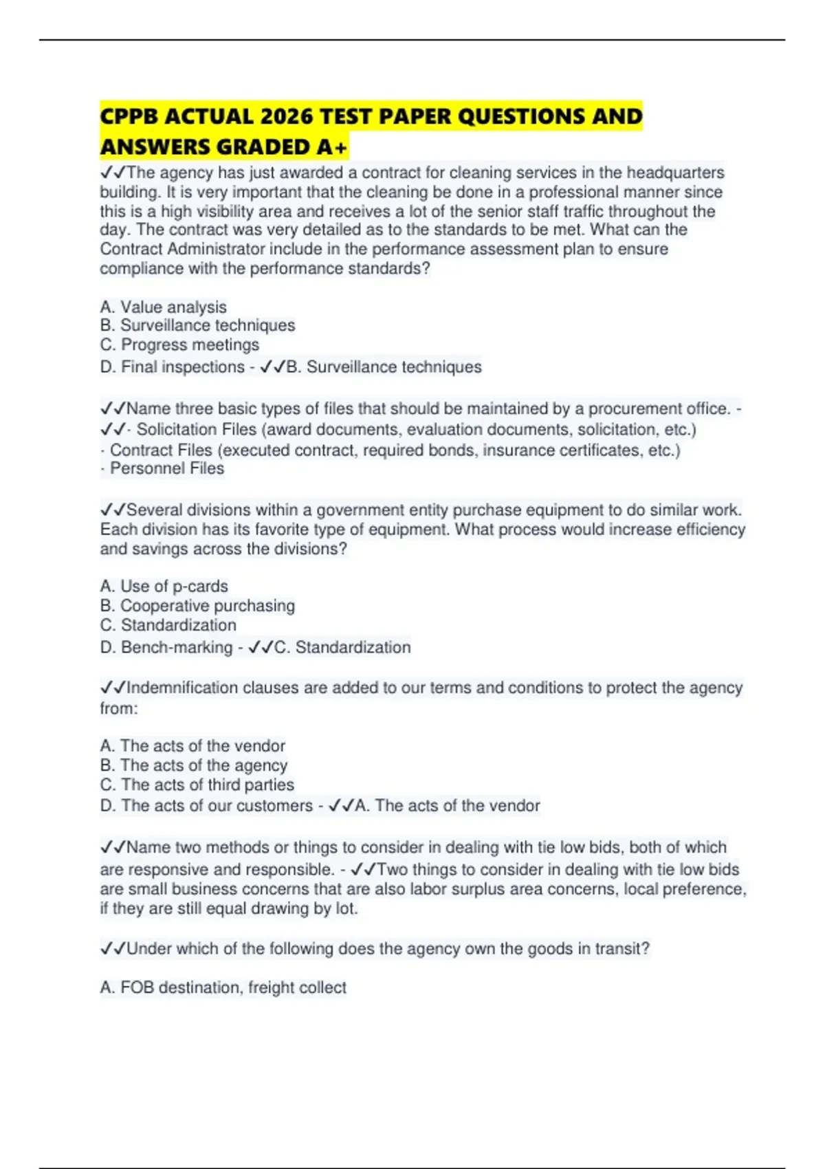 ✔✔A solicitation document currently on the street contains a clause that has been