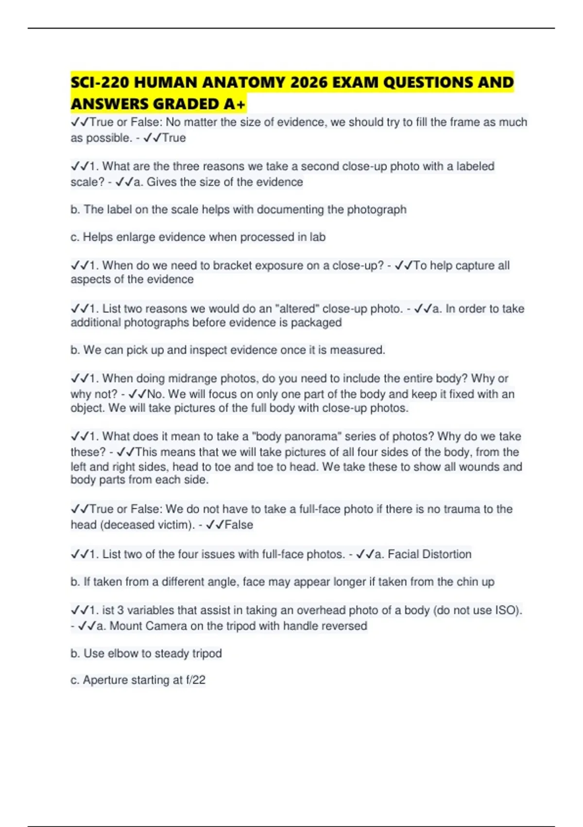 SCI-220 HUMAN ANATOMY 2026 EXAM QUESTIONS AND ANSWERS GRADED A+