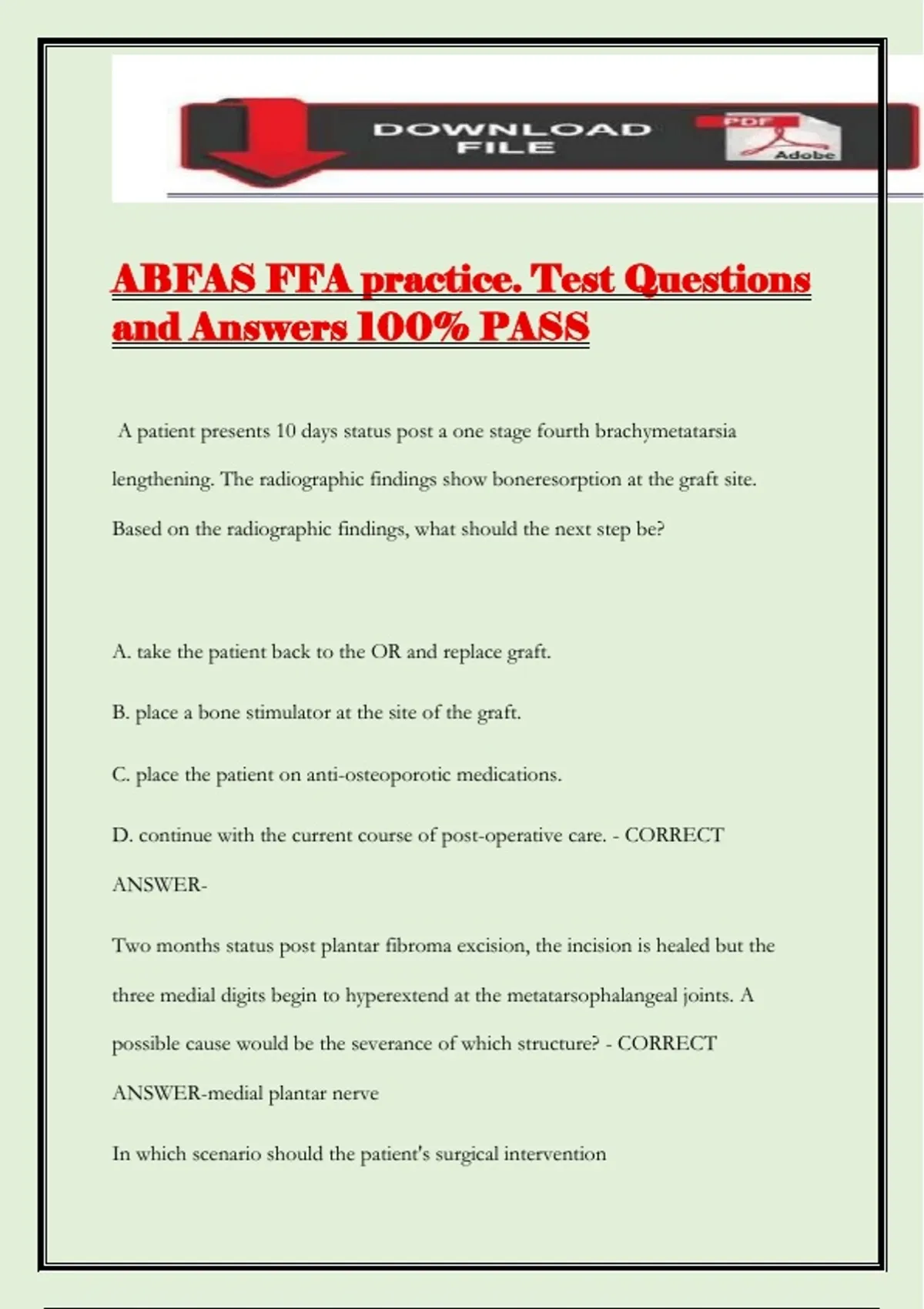 ABFAS FFA practice. Test Questions and Answers 100% PASS