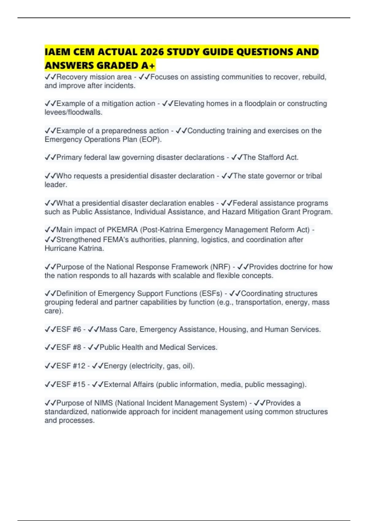IAEM CEM ACTUAL 2026 STUDY GUIDE QUESTIONS AND ANSWERS GRADED A+