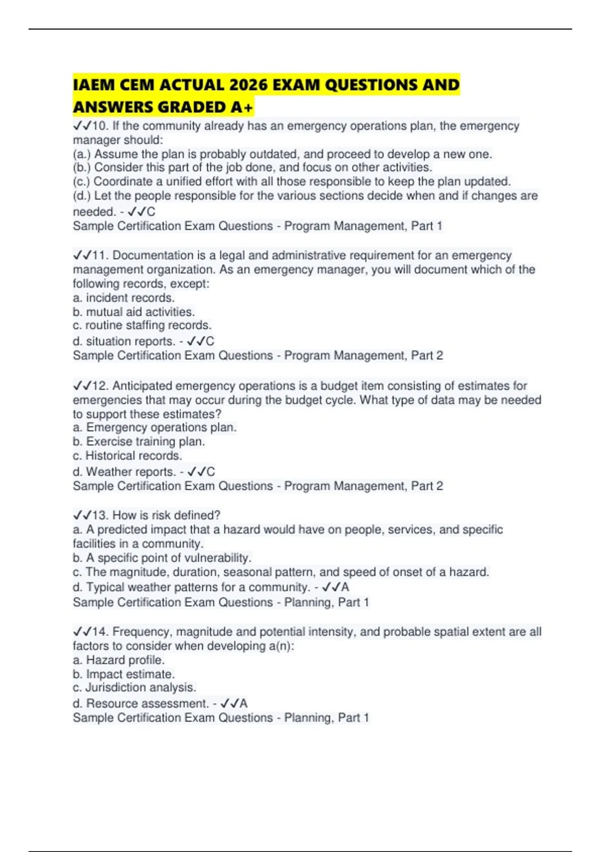 IAEM CEM ACTUAL 2026 EXAM QUESTIONS AND ANSWERS GRADED A+