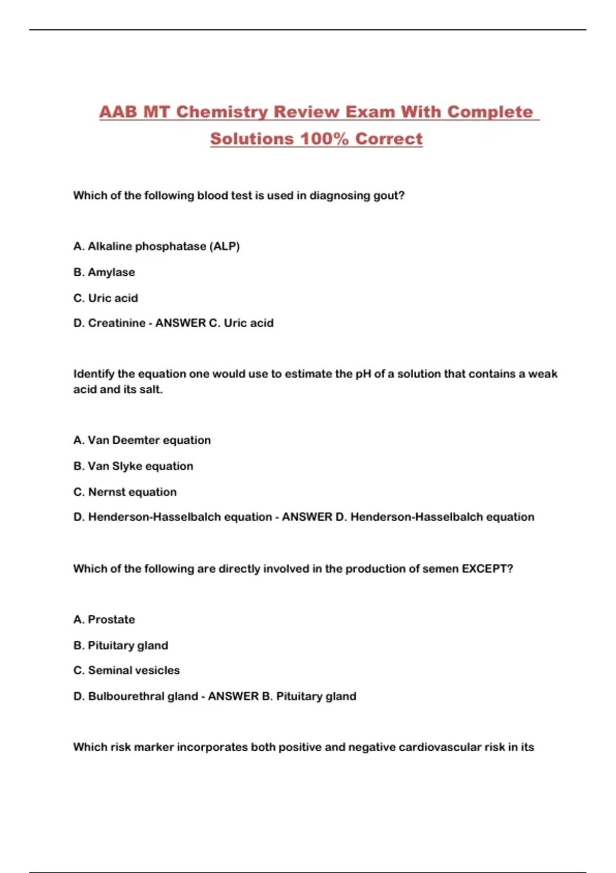 AAB MT Chemistry Review Exam With Complete