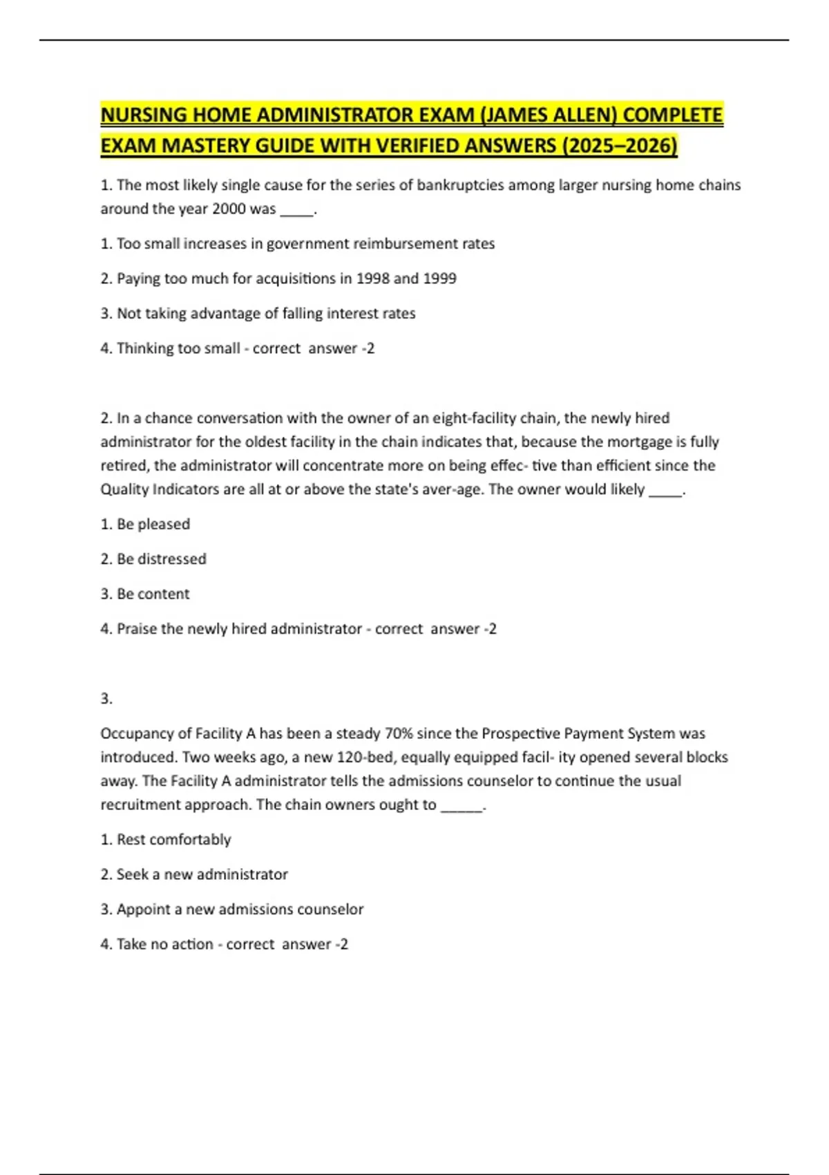 NURSING HOME ADMINISTRATOR EXAM (JAMES ALLEN) COMPLETE