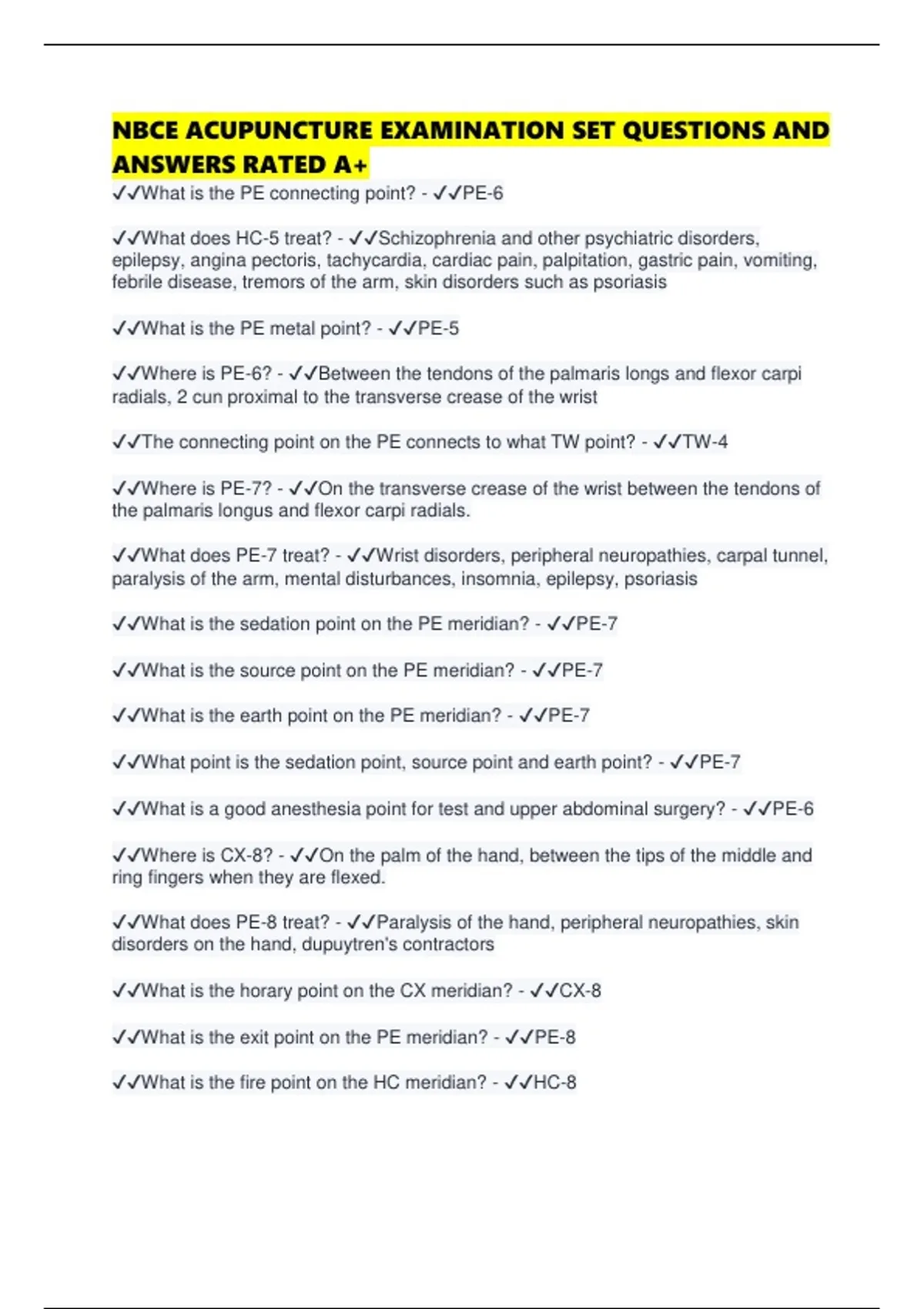 NBCE ACUPUNCTURE EXAMINATION SET QUESTIONS AND ANSWERS RATED A+