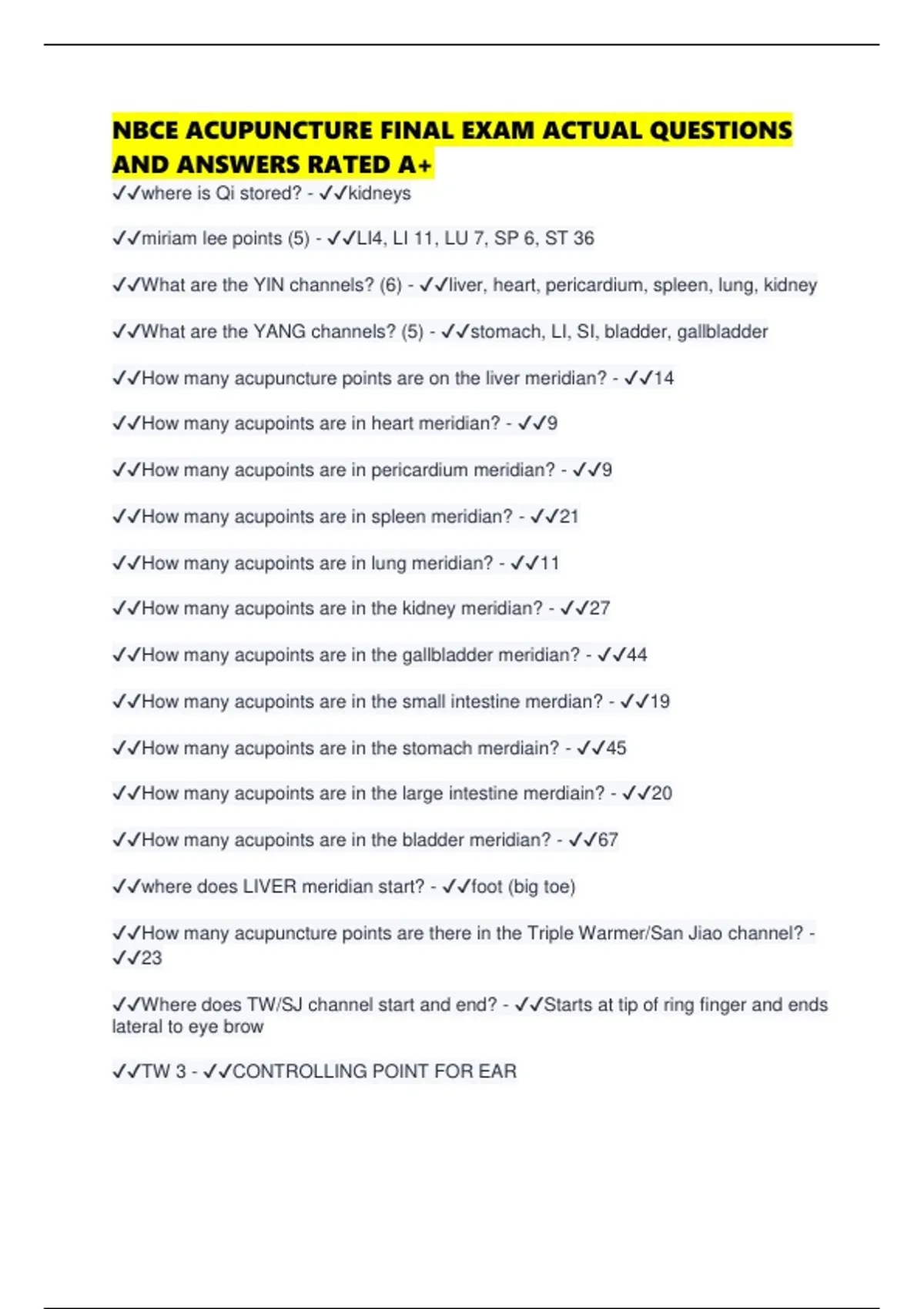 NBCE ACUPUNCTURE FINAL EXAM ACTUAL QUESTIONS AND ANSWERS RATED A+