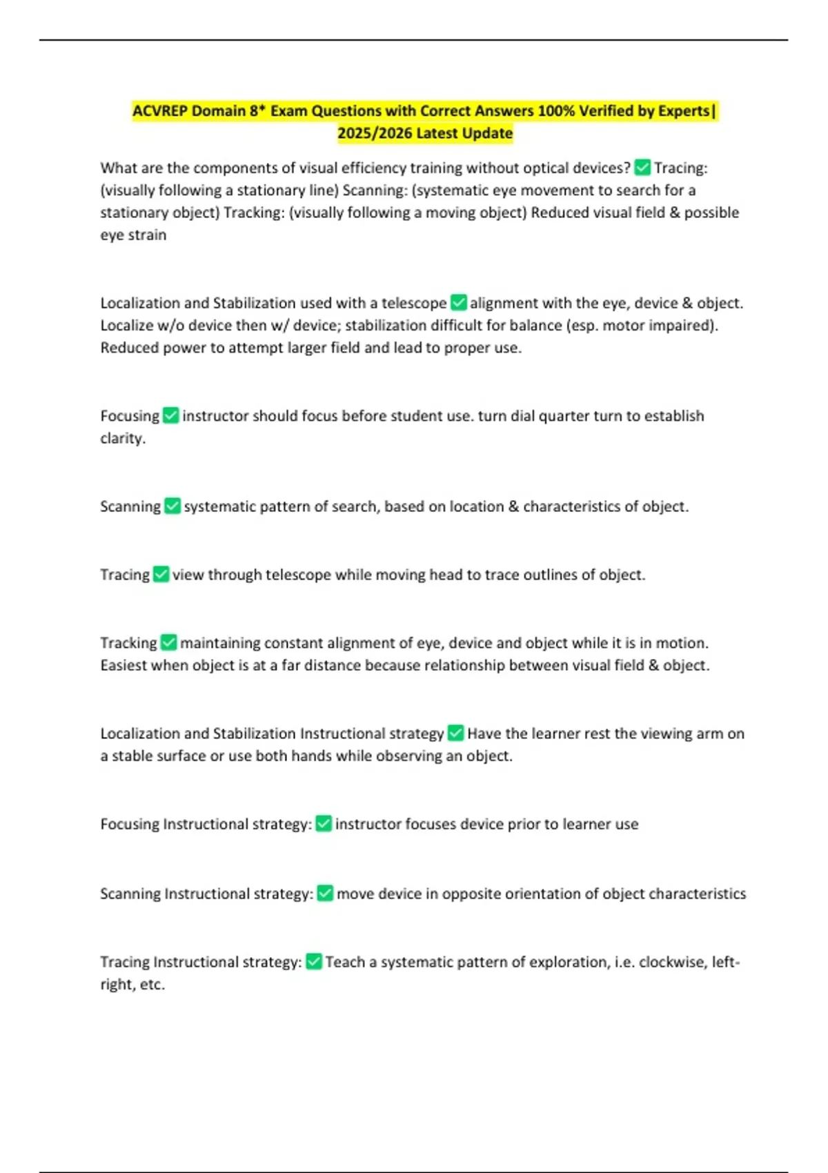 ACVREP Domain 8* Exam Questions with Correct Answers 100% Verified by Experts|