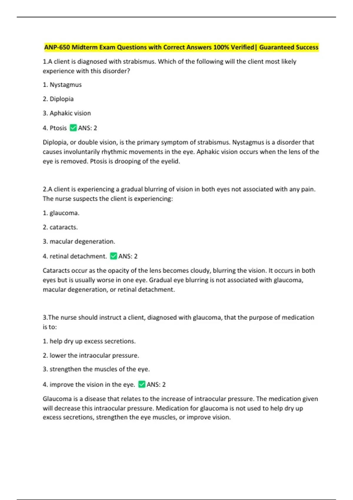 ANP-650 Midterm Exam Questions with Correct Answers 100% Verified| Guaranteed Success