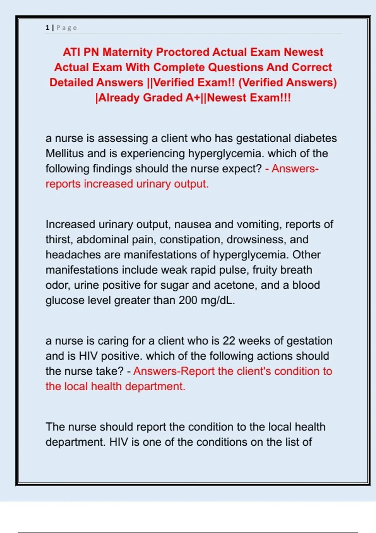 ATI PN Maternity Proctored Actual Exam Newest Actual Exam With Complete Questions And Correct Detailed Answers ||Verified Exam!! (Verified Answers) |Already Graded A+||Newest Exam!!!