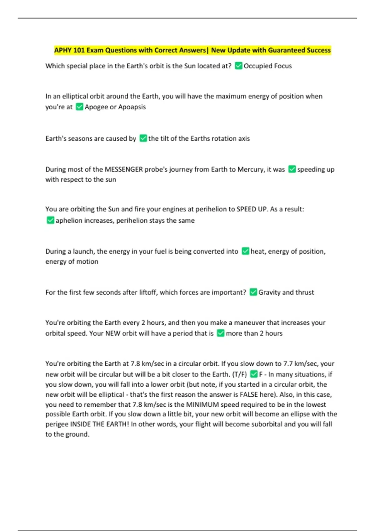 APHY 101 Exam Questions with Correct Answers| New Update with Guaranteed Success
