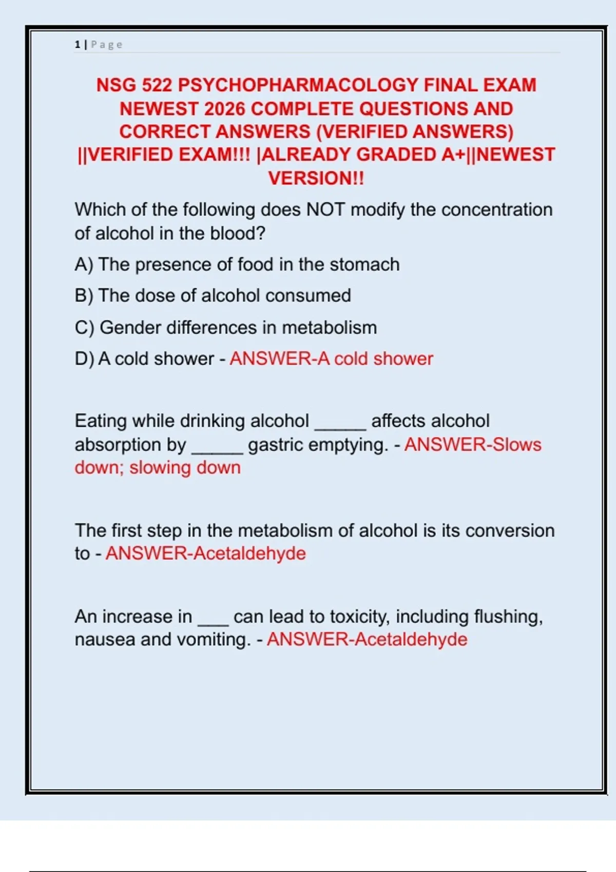 ||VERIFIED EXAM!!! |ALREADY GRADED A+||NEWEST