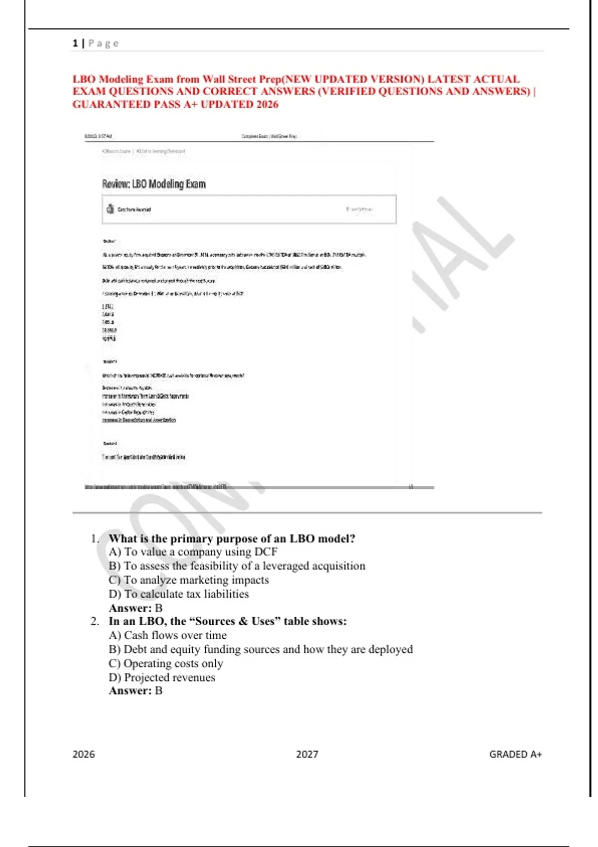 LBO Modeling Exam from Wall Street Prep(NEW UPDATED VERSION) LATEST ACTUAL