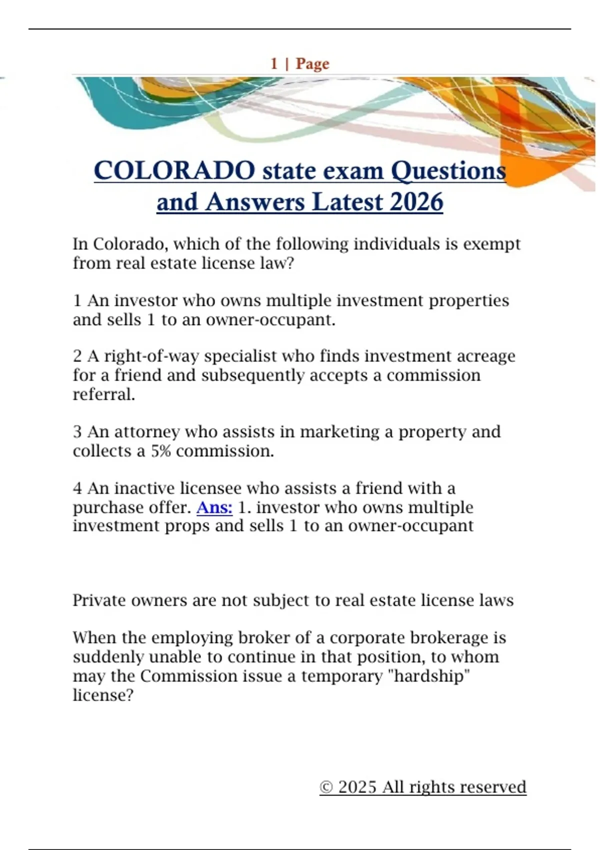COLORADO state exam Questions and Answers Latest 2026