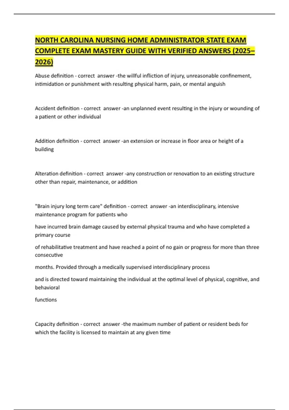 NORTH CAROLINA NURSING HOME ADMINISTRATOR STATE EXAM