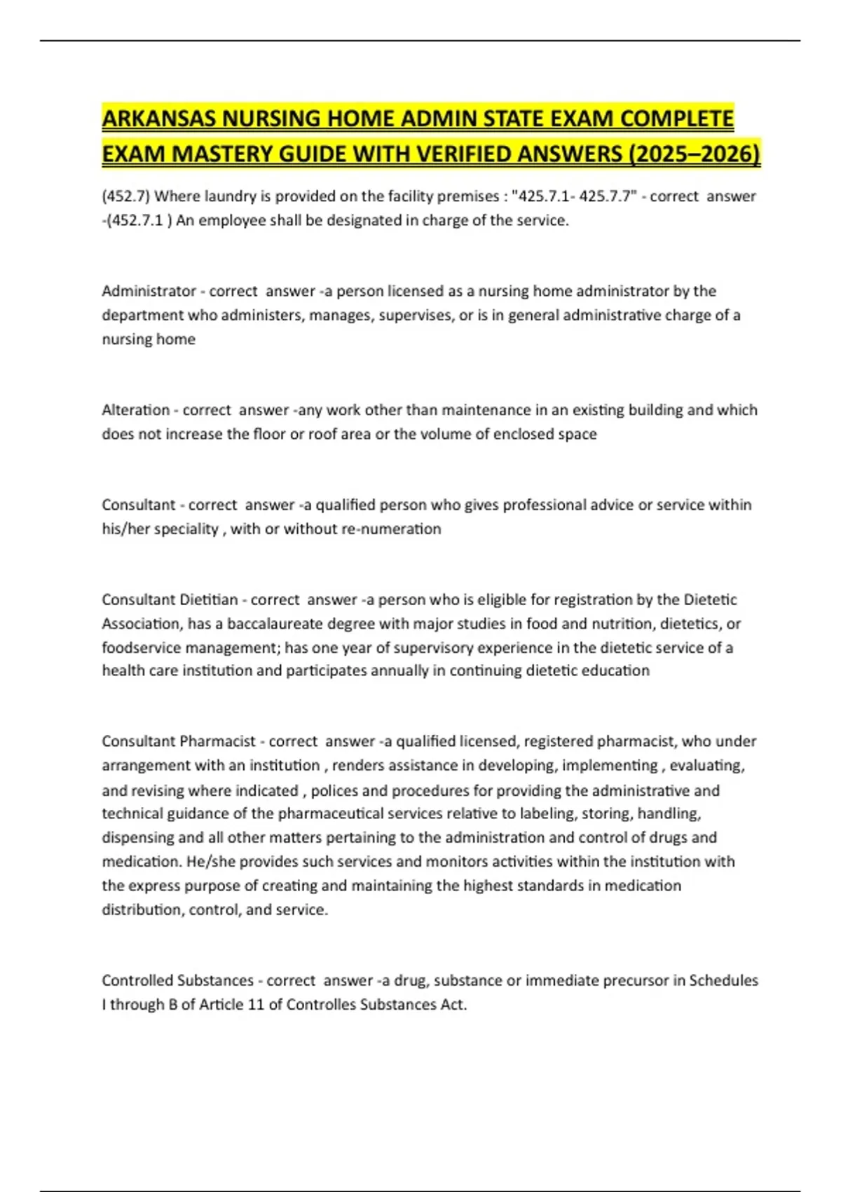 ARKANSAS NURSING HOME ADMIN STATE EXAM COMPLETE EXAM MASTERY GUIDE WITH VERIFIED ANSWERS (2025–2026)