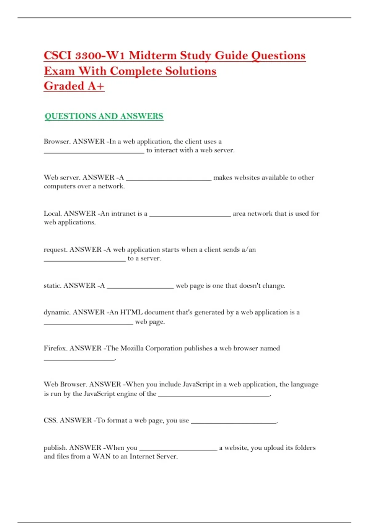 CSCI 3300-W1 Midterm Study Guide Questions Exam With Complete Solutions