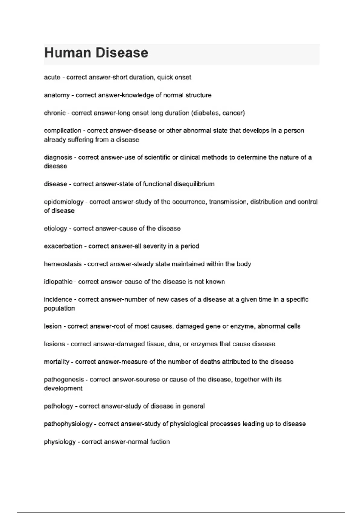 Human Disease questions and answers