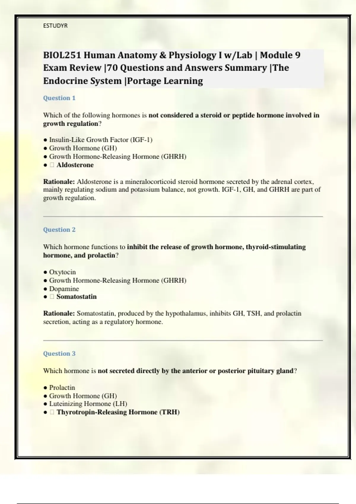 Exam Review |70 Questions and Answers Summary |The