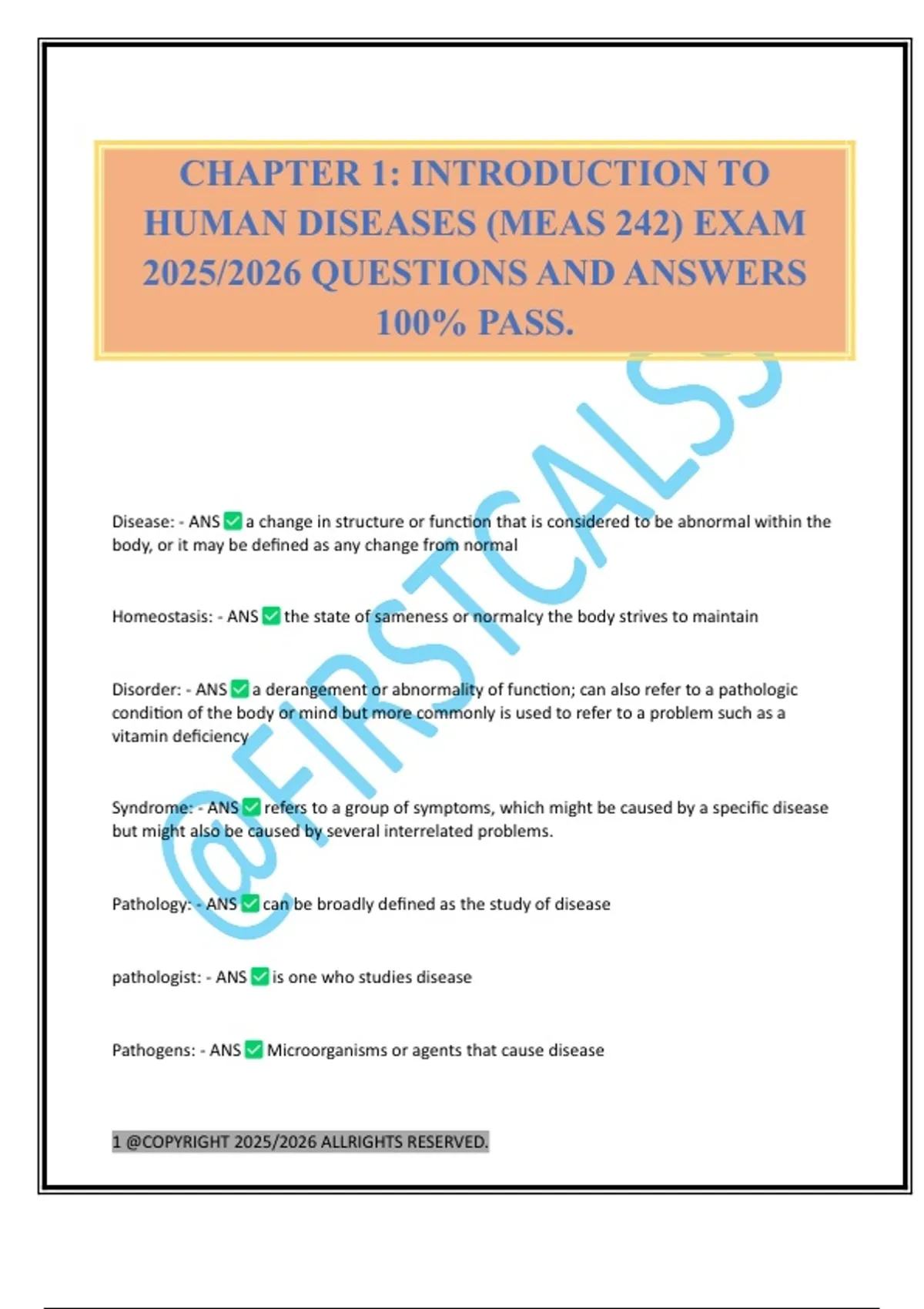 HUMAN DISEASES (MEAS 242) EXAM