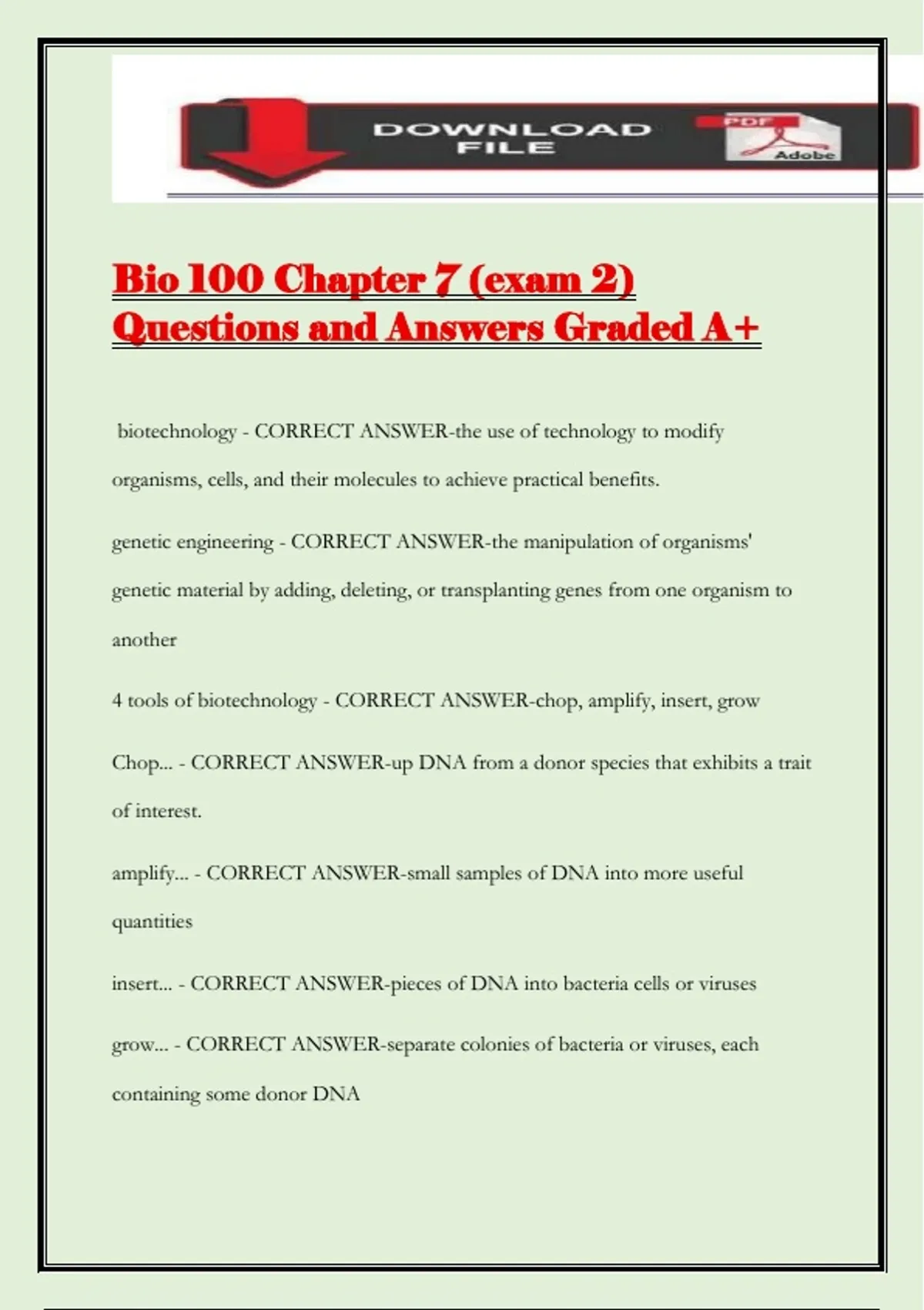 Bio 100 Chapter 7 (exam 2) Questions and Answers Graded A+
