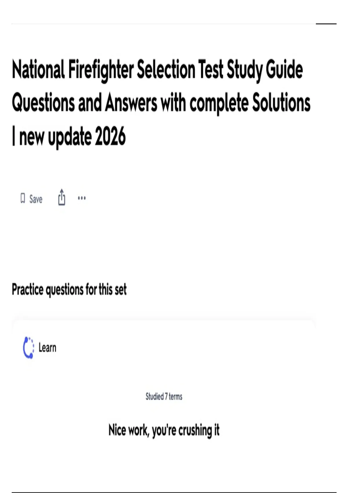 National Firefighter Selection Test Study Guide Questions and Answers with complete Solutions | new update 2026