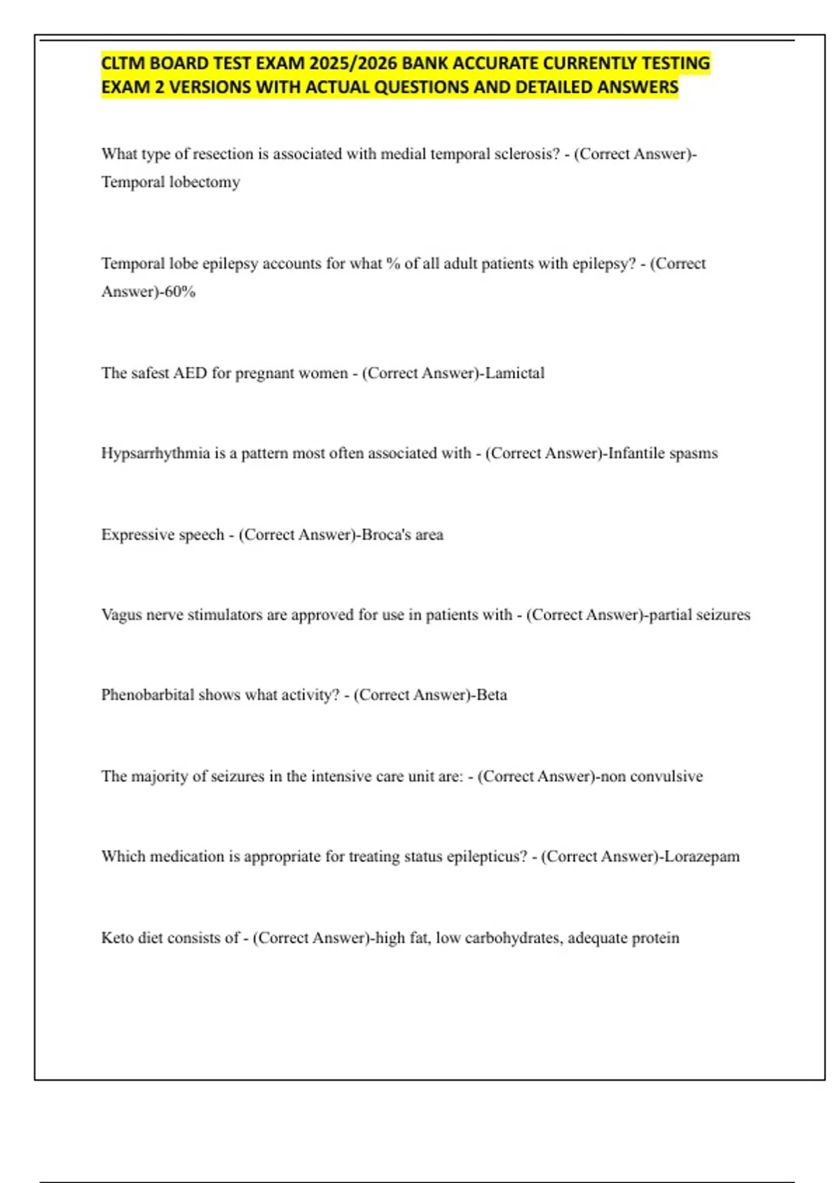 CLTM BOARD TEST EXAM 2025/2026 BANK ACCURATE CURRENTLY TESTING EXAM 2 VERSIONS WITH ACTUAL QUESTIONS AND DETAILED ANSWERS