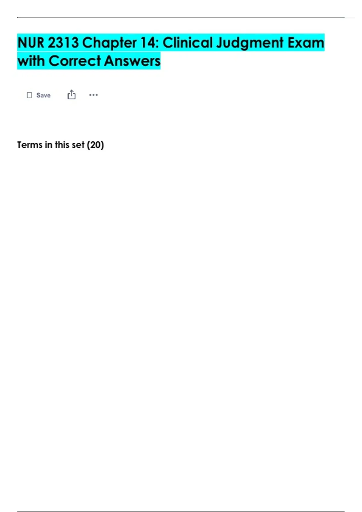 NUR 2313 Chapter 14: Clinical Judgment Exam