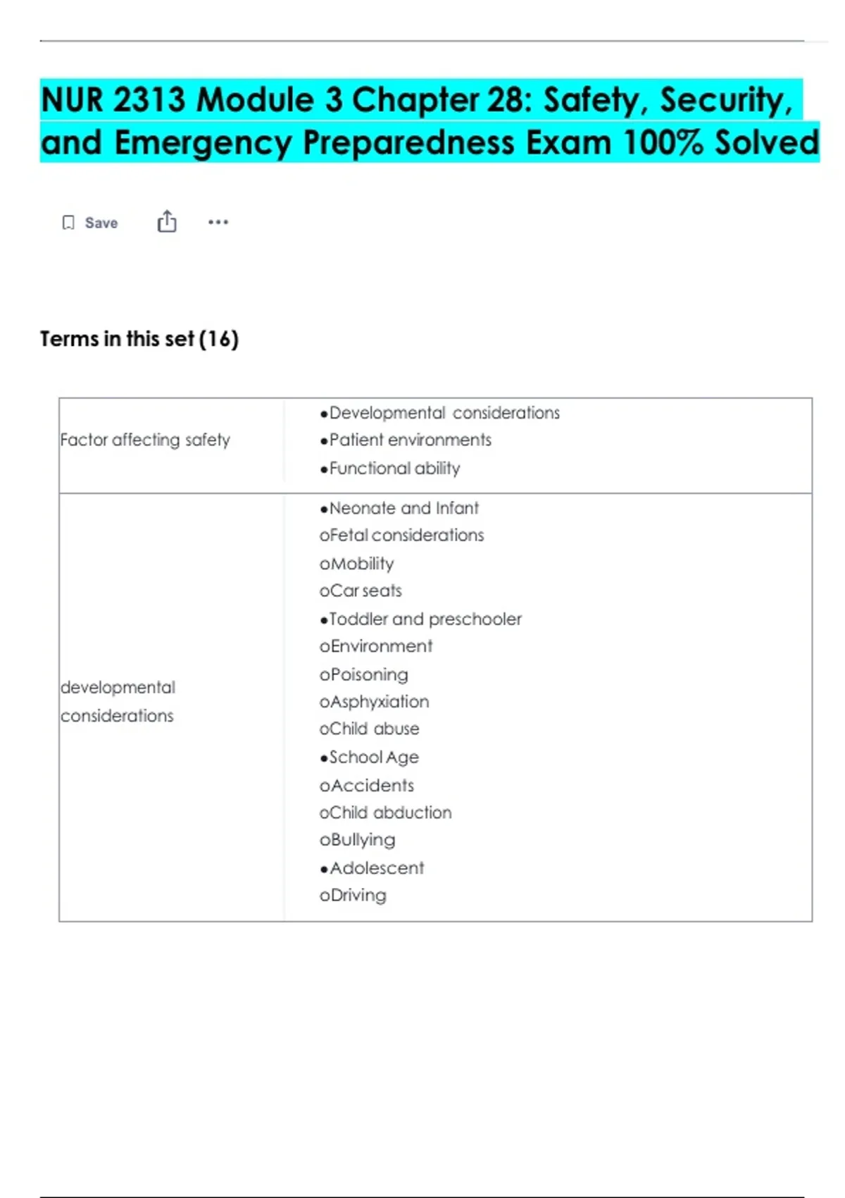NUR 2313 Module 3 Chapter 28: Safety, Security,