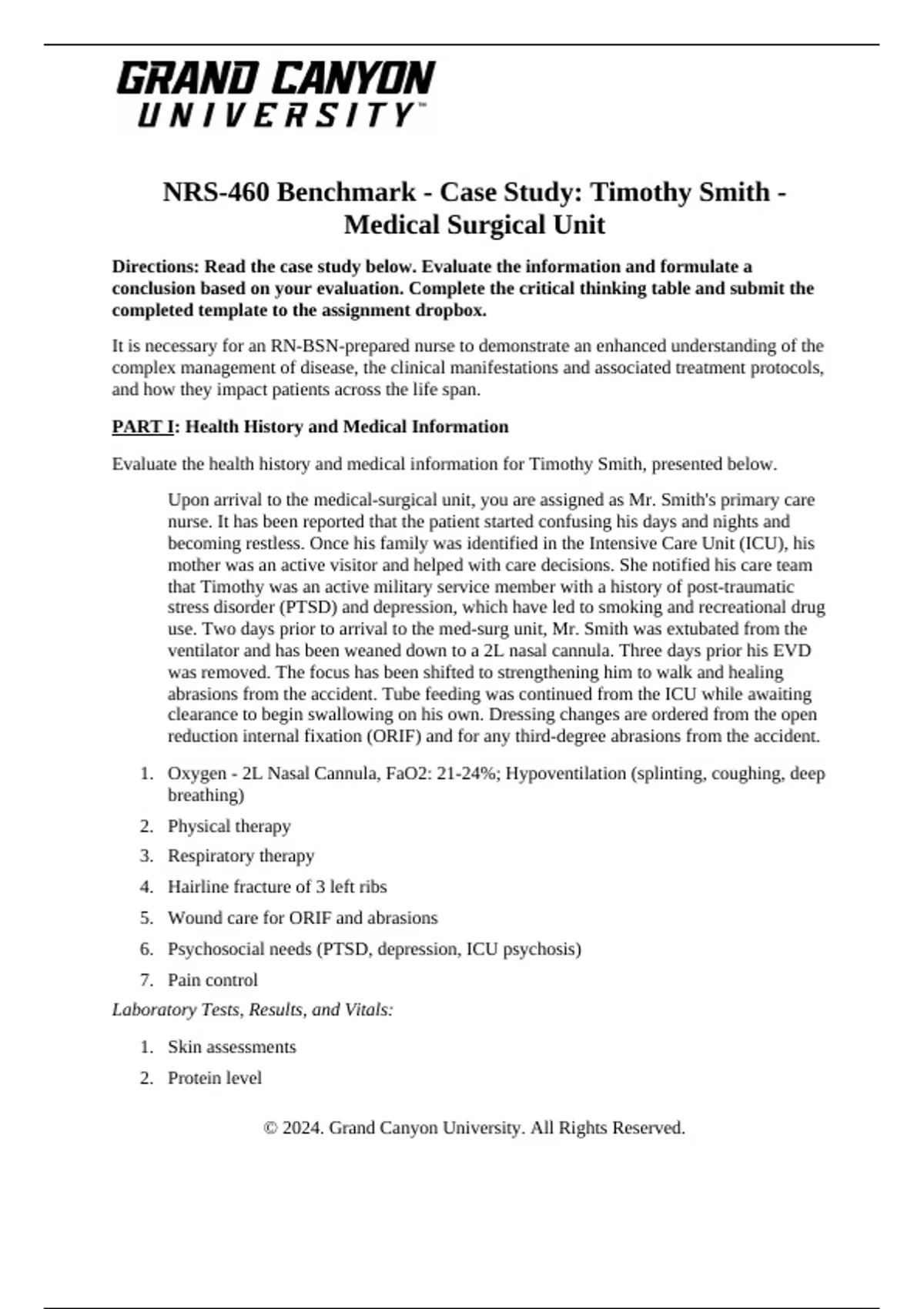 Part 1: Evaluate Outcomes of Care Based on current assessment findings, Mr. Smith is not