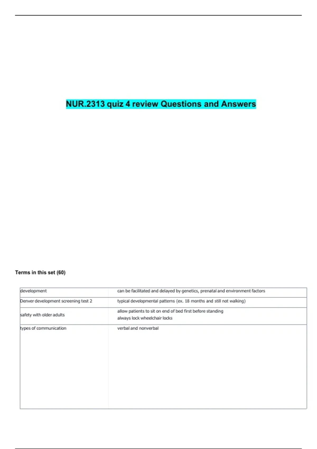 NUR.2313 quiz 4 review Questions and Answers