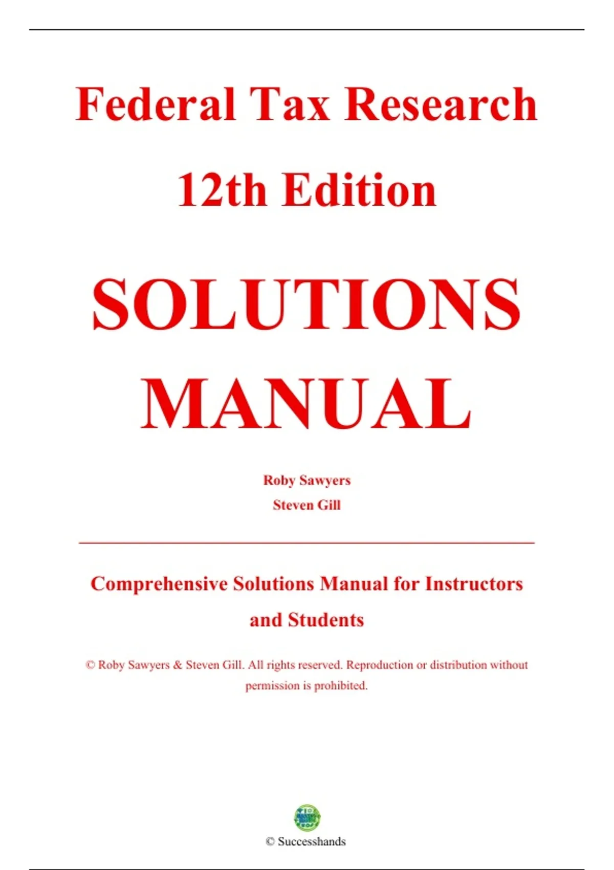 , Solutions Manual for Federal Tax Research (12th Edition)