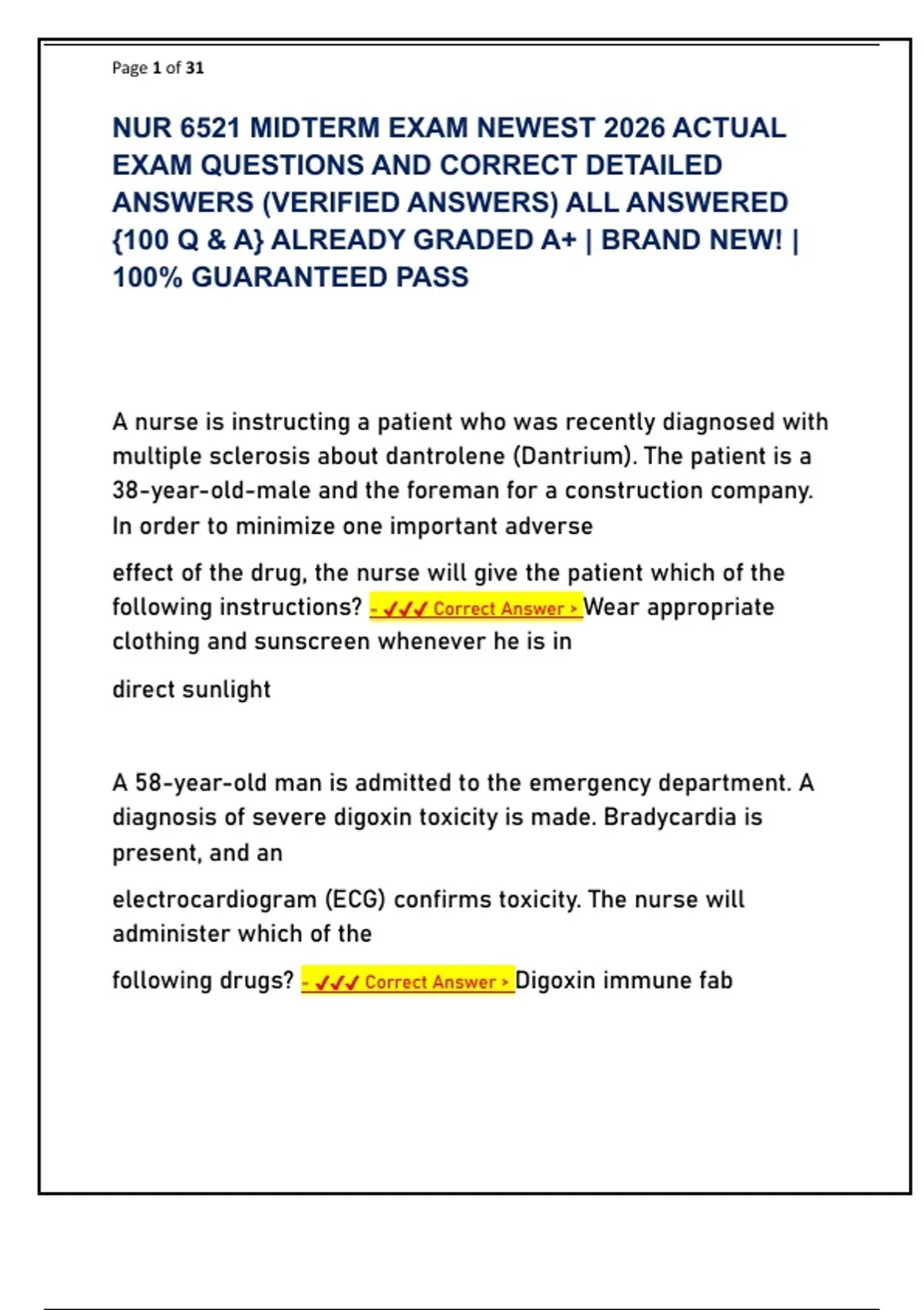 {100 Q & A} ALREADY GRADED A+ | BRAND NEW! |