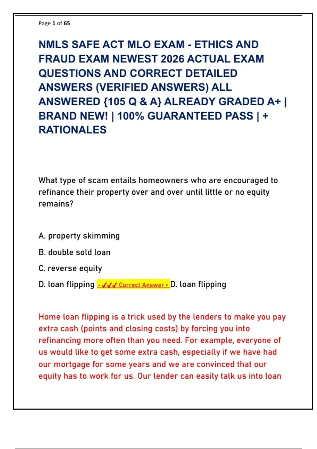D. loan flipping - ✔✔✔ Correct Answer > D. loan flipping