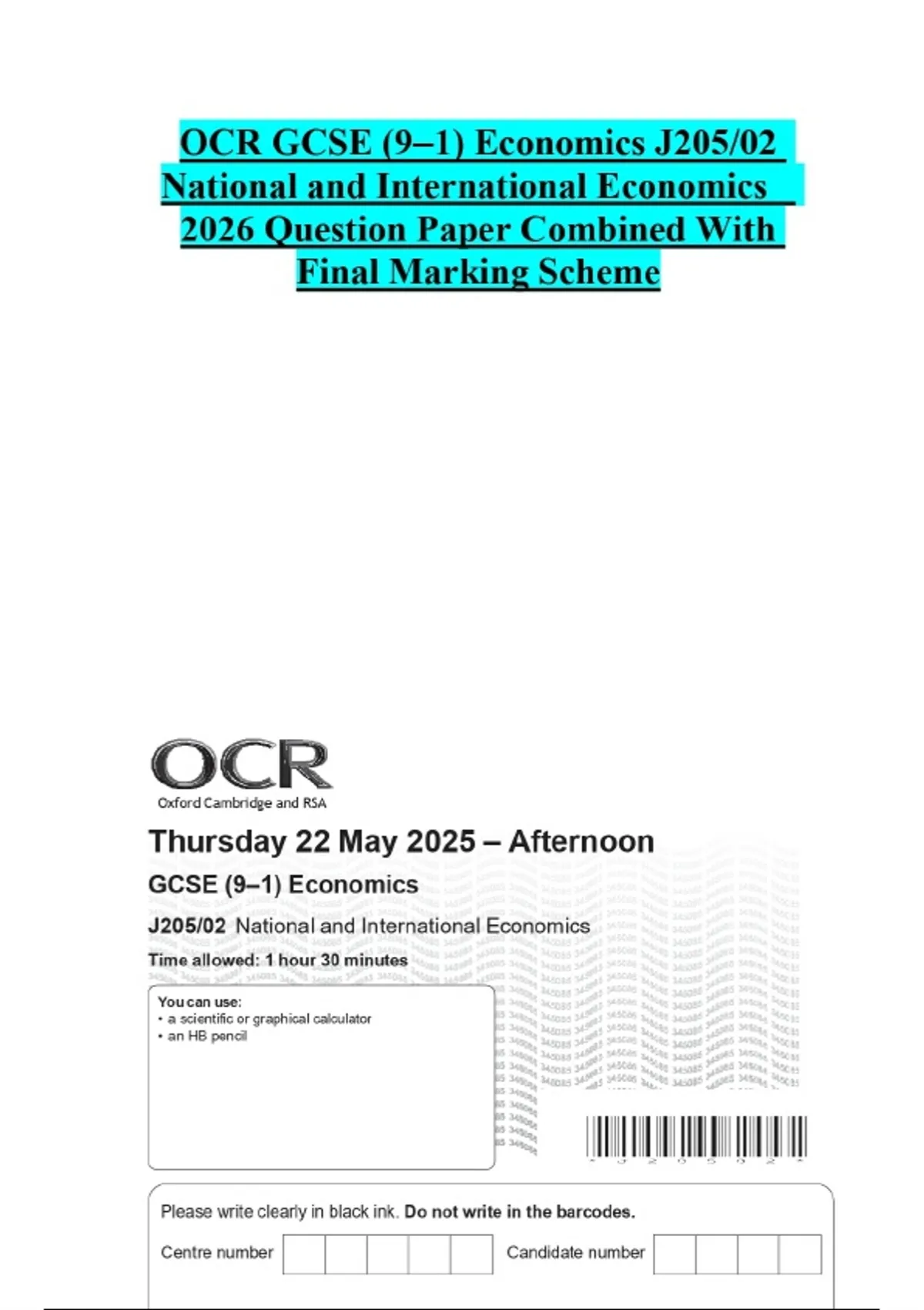 OCR GCSE (9–1) Economics J205/02 National and International Economics 2026 Question Paper Combined With Final Marking Scheme