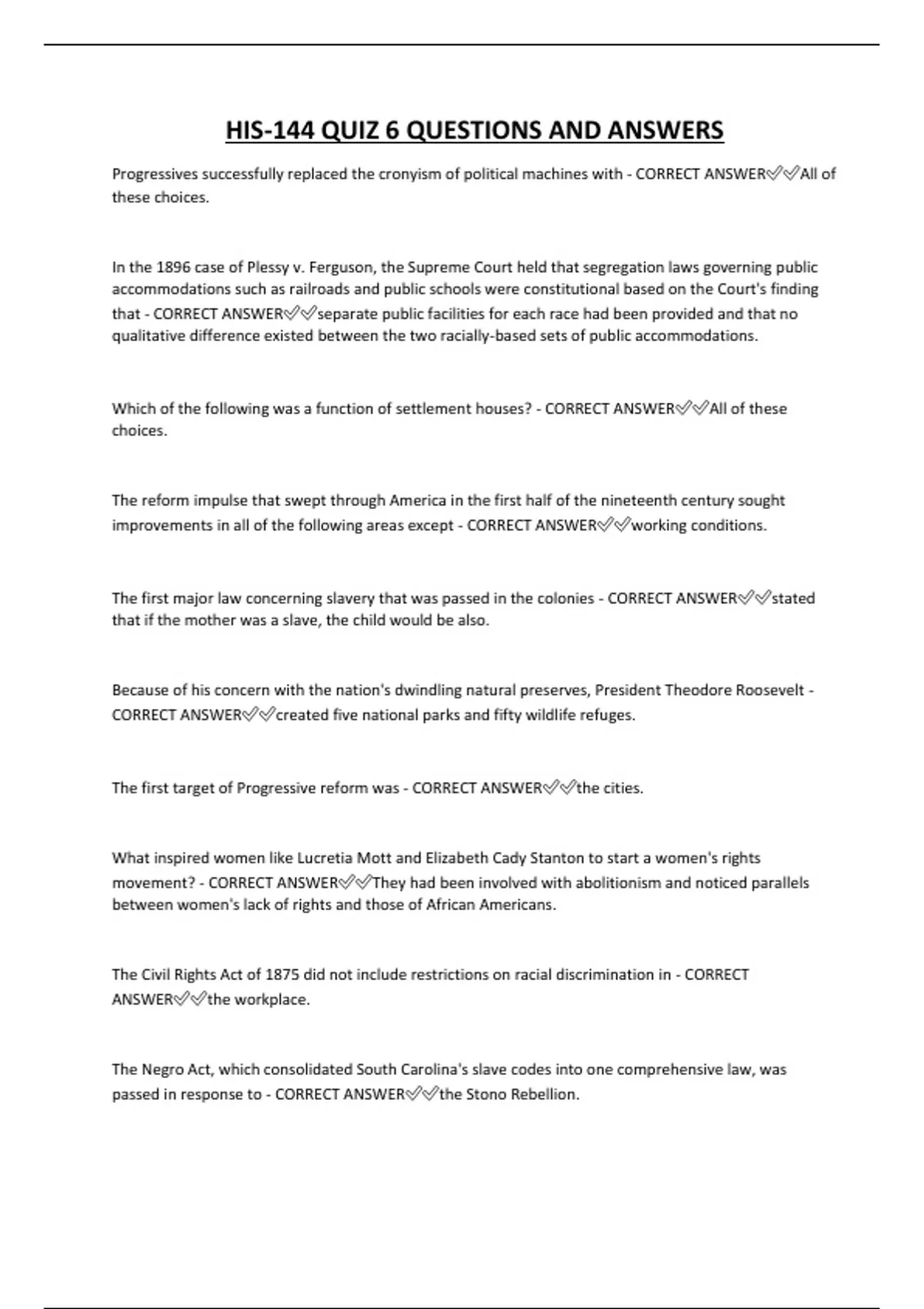HIS-144 QUIZ 6 QUESTIONS AND ANSWERS Progressives successfully replaced the cronyism of political machines with - CORRECT ANSWERAll of these choices.