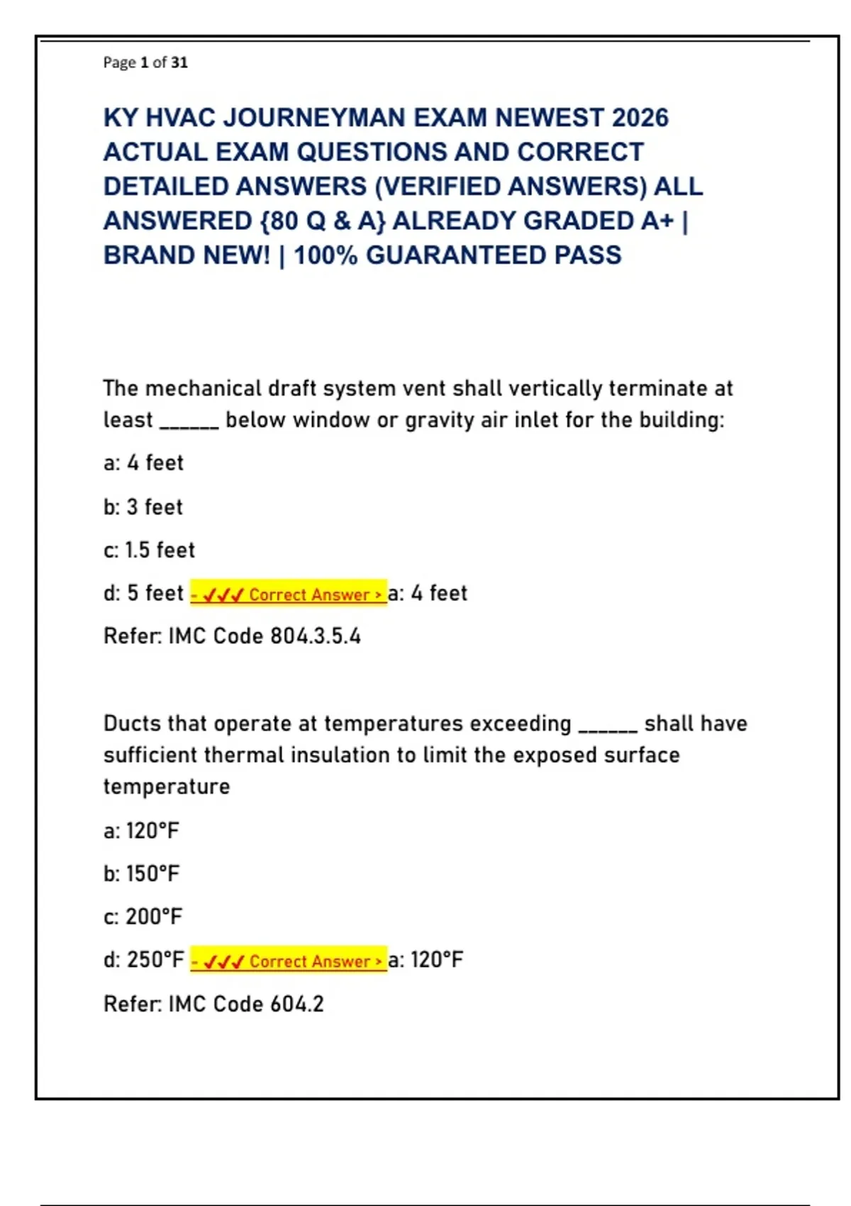 KY HVAC JOURNEYMAN EXAM NEWEST 2026