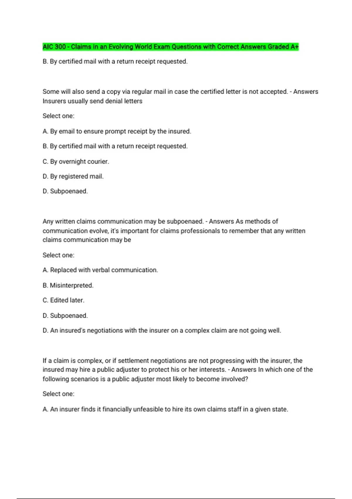 Any written claims communication may be subpoenaed. - Answers As methods of