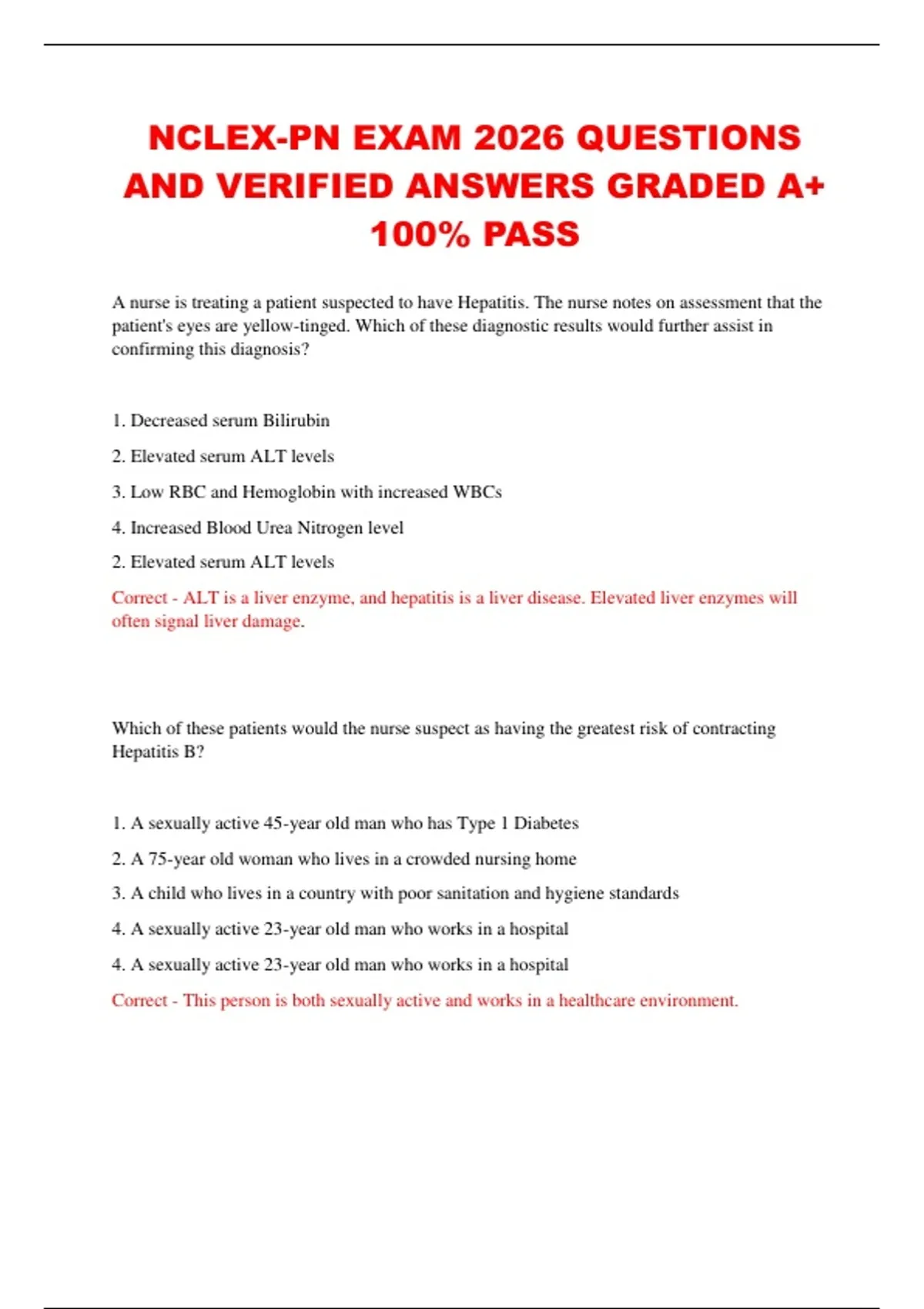 Correct - ALT is a liver enzyme, and hepatitis is a liver disease. Elevated liver enzymes will