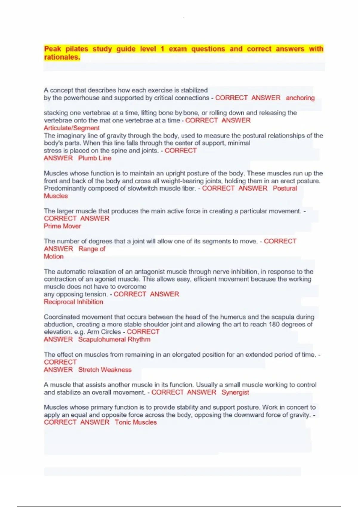 Peak pilates study guide level 1 exam questions and correct answers with rationales.