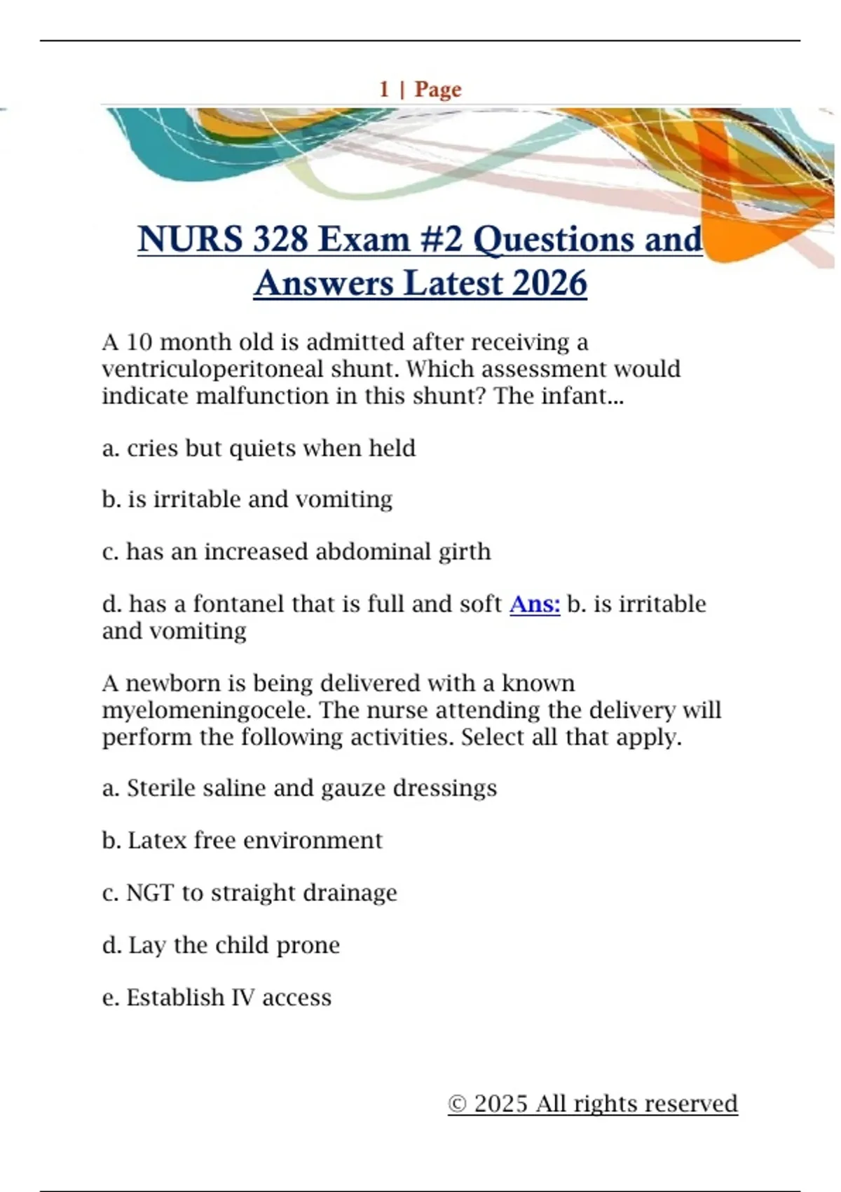 NURS 328 Exam #2 Questions and