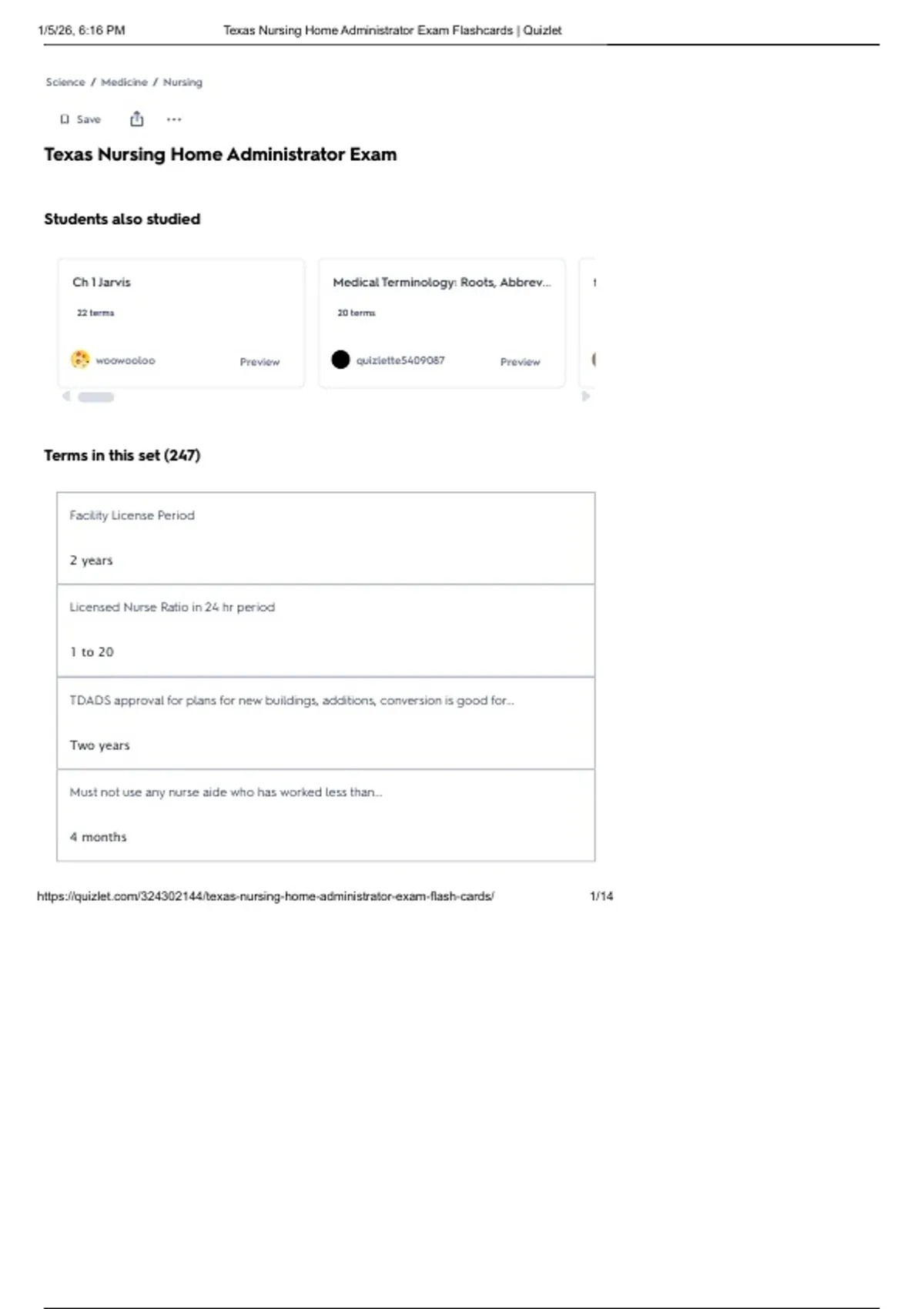 https://quizlet.com/324302144/texas-nursing-home-administrator-exam-flash-cards/ 1/14