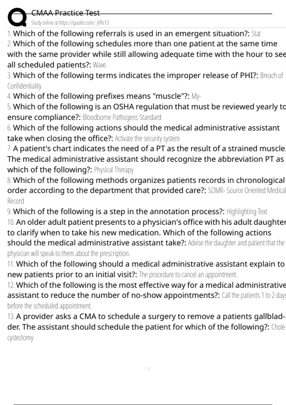 13. A provider asks a CMA to schedule a surgery to remove a patients gallblad-