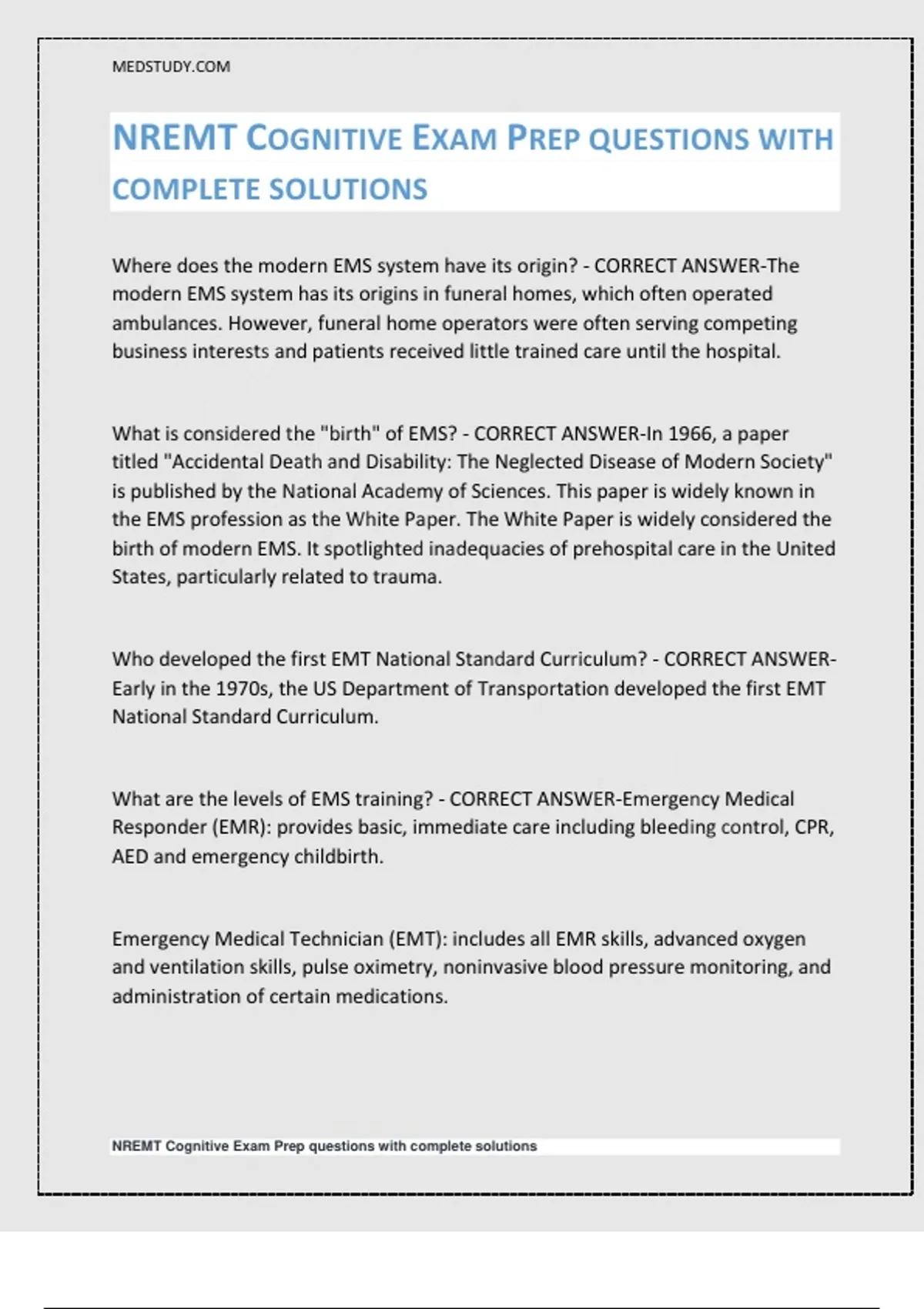 NREMT COGNITIVE EXAM PREP QUESTIONS WITH