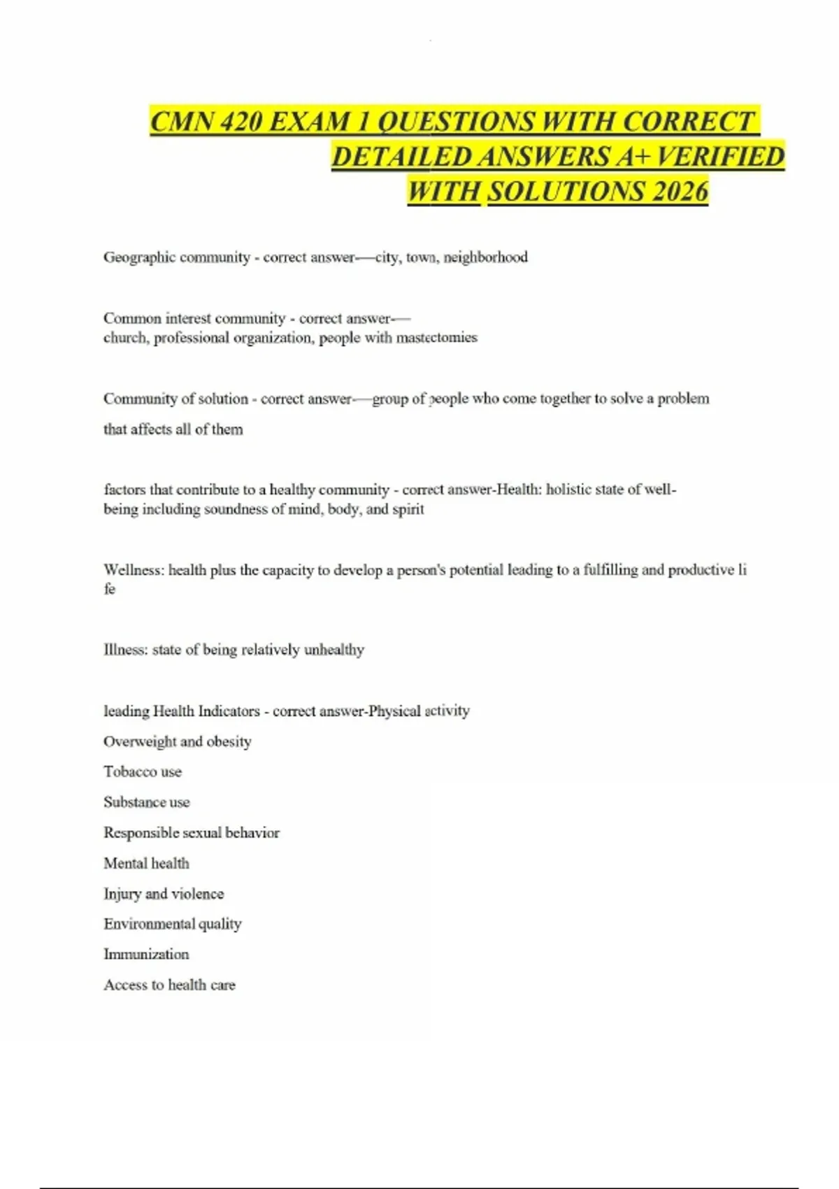 CMN 420 EXAM 1 QUESTIONS WITH CORRECT DETAILED ANSWERS A+ VERIFIED WITH SOLUTIONS 2026CMN 420 EXAM 1 QUESTIONS WITH CORRECT DETAILED ANSWERS A+ VERIFIED WITH SOLUTIONS 2026CMN 420 EXAM 1 QUESTIONS WITH CORRECT DETAILED ANSWERS A+ VERIFIED WITH SOLUTIONS 2026